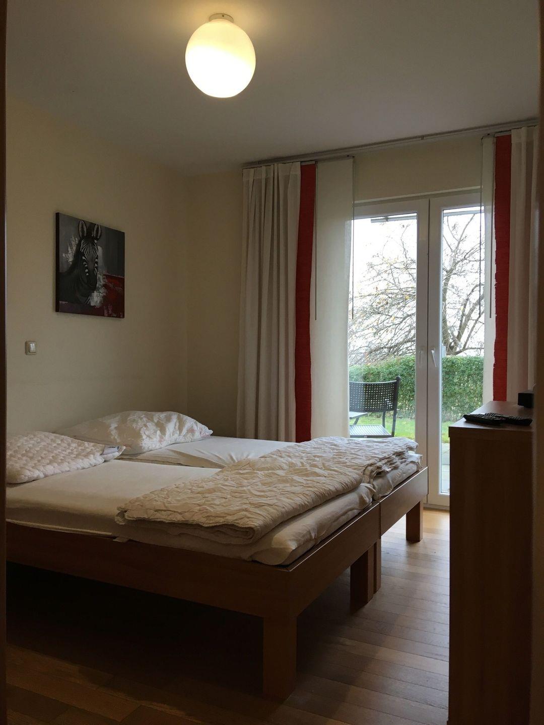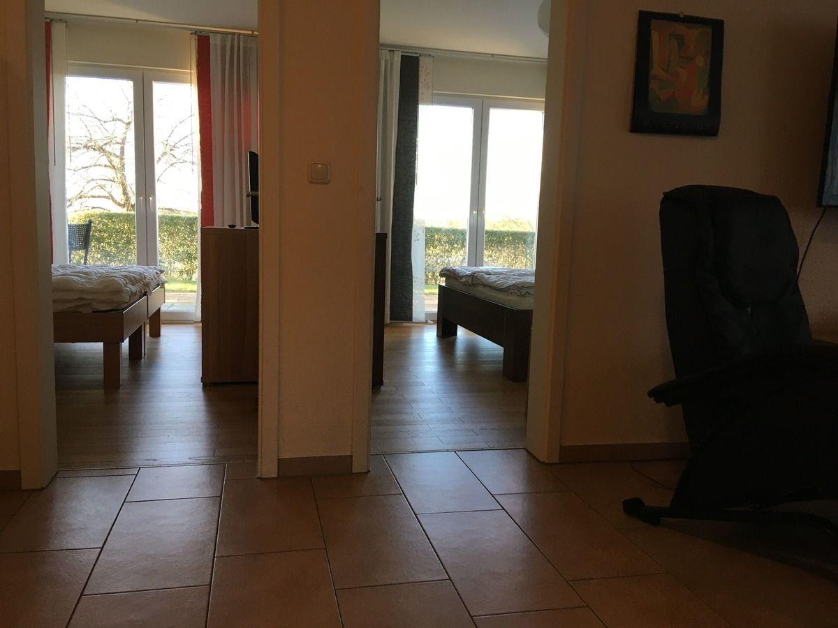 Bei diesem Urlaubsdomizil handelt es sich um eine Komfortferienwohnung mit hochwertiger Ausstattung, die sich im Erdgeschoss barrierefrei über die gesamte Hälte eines großzügigen Öko-Massivhauses erstreckt. In exponierter Lage können Sie von allen Zimmern den Ausblick genießen. Die umlaufende Sonnenterrasse bietet viel Platz zum Entspannen. Das Grundstück grenzt an naturbelassene Streuobstwiesen, die dann in das Grün des Golfplatzes übergehen.