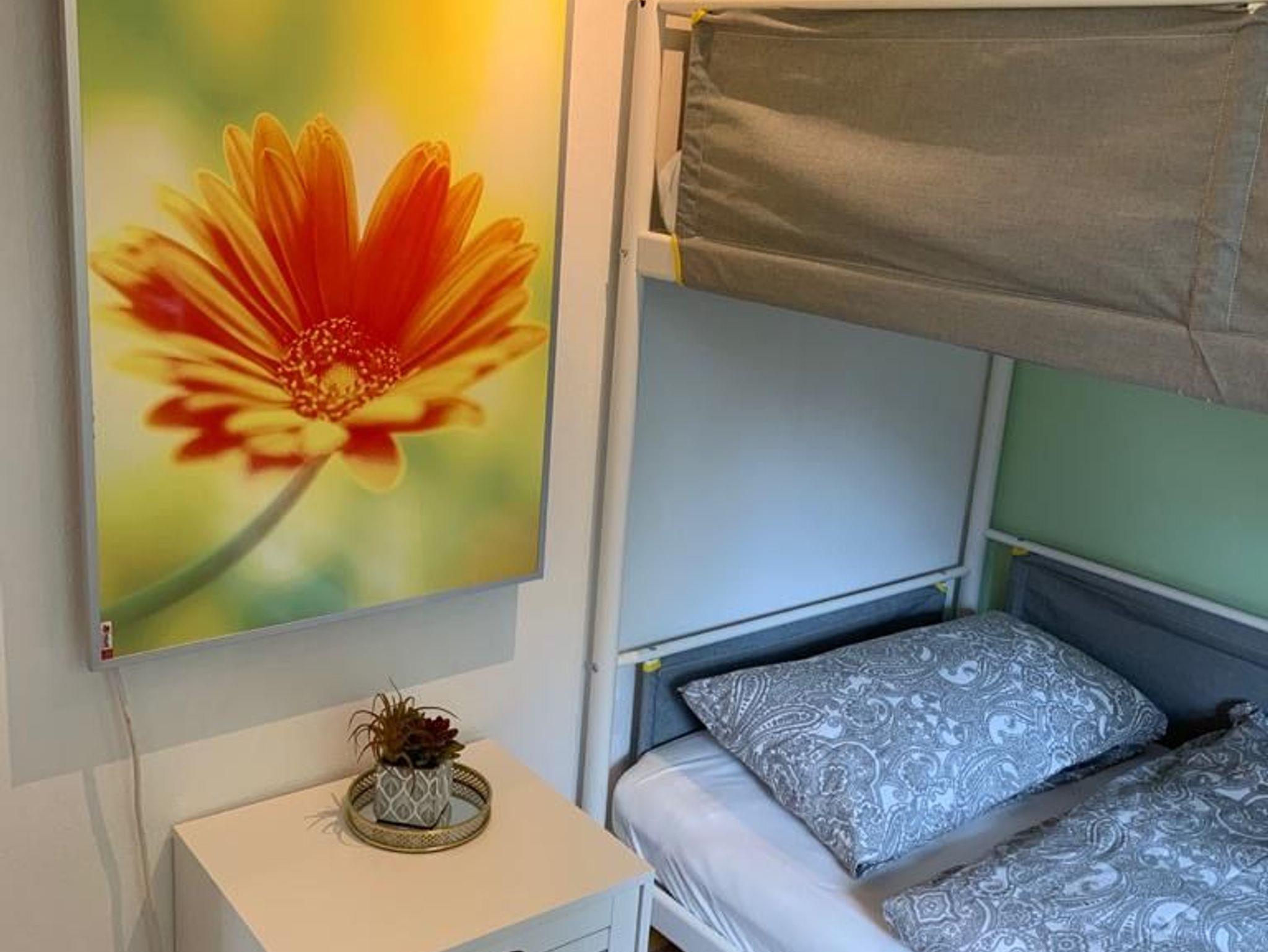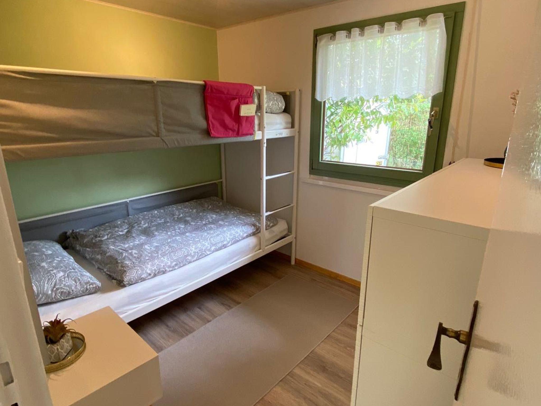 Der Bungalow Guilietta bietet Ihnen 40m² Wohnfläche und eine gemütliche Atmosphäre. Der Wohnbereich ist mit einem TV ausgestattet, und die offene Küche ermöglicht ein kommunikatives Zusammensein. Die Schlafmöglichkeiten umfassen ein Schlafzimmer mit Doppelbett und ein weiteres Schlafzimmer mit einem Etagenbett, ideal für Familien. Das Badezimmer ist kompakt gestaltet und verfügt über eine Dusche.