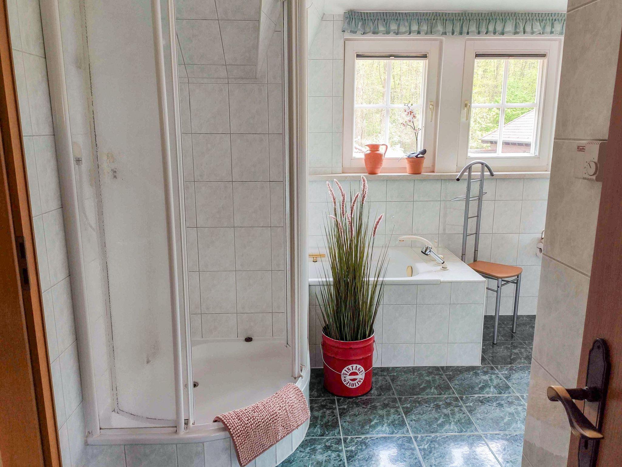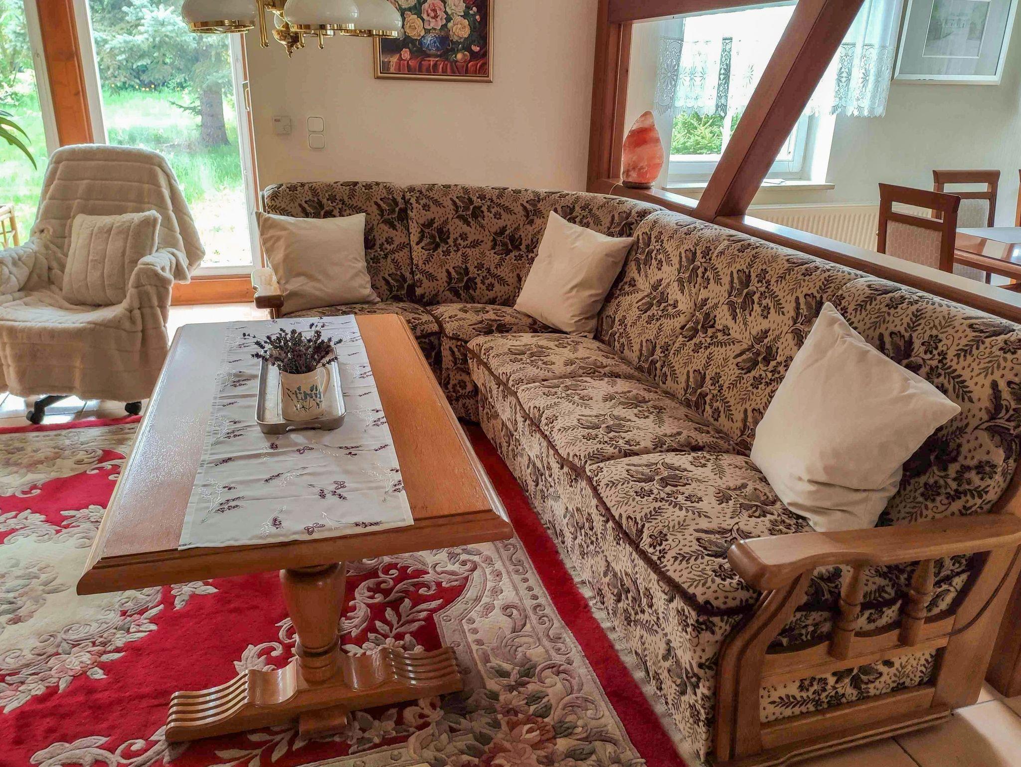 Das Haus im Wald empfängt dich mit einer warmen, freundlichen Atmosphäre und viel Raum zum Wohlfühlen. Auf 120 m² Wohnfläche erstreckt sich ein liebevoll gestaltetes Ferienhaus, das für 5 Personen ideal geeignet ist. Im Obergeschoss warten drei Schlafzimmer auf dich: zwei mit komfortablen Doppelbetten (180x200) und eines mit einem Einzelbett (90x200): perfekt für Familien, Paare oder Freunde, die gemeinsam verreisen. Die Etage verfügt außerdem über zwei Bäder: eines mit Dusche, das andere großzügig ausgestattet mit Dusche, Badewanne und Bidet.