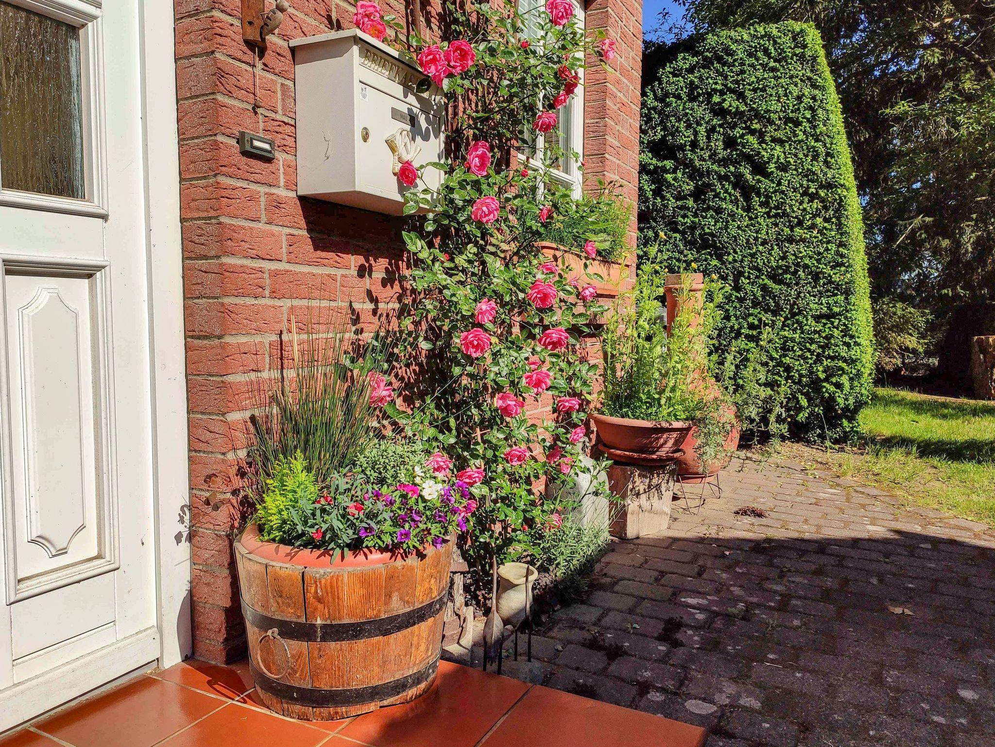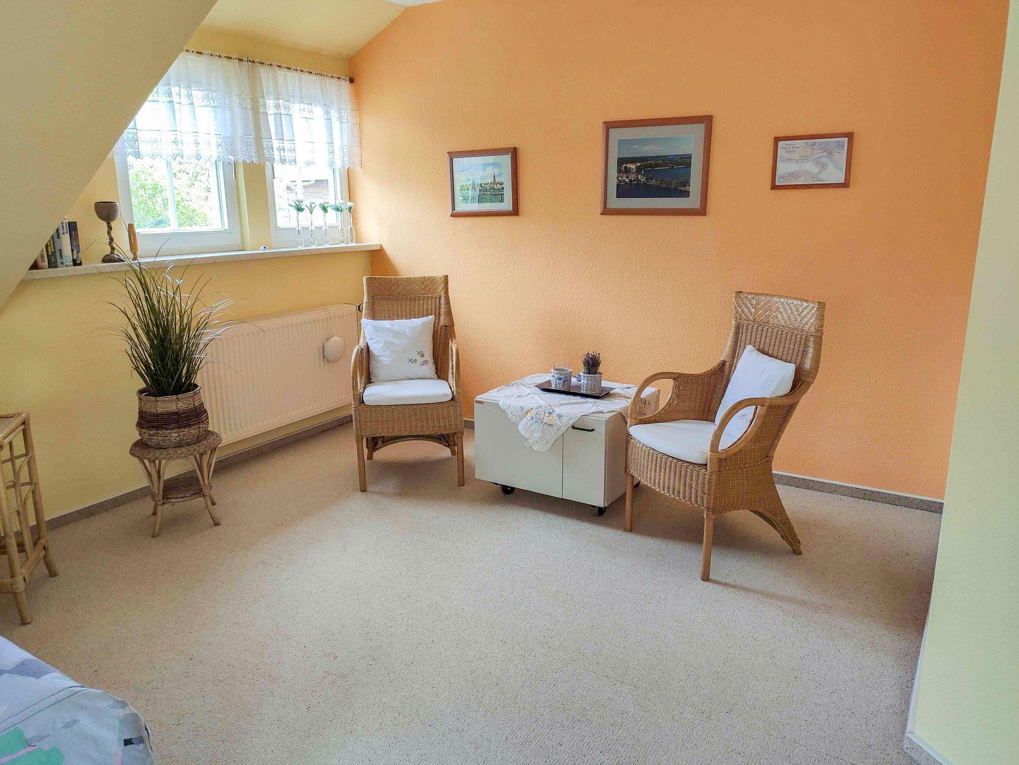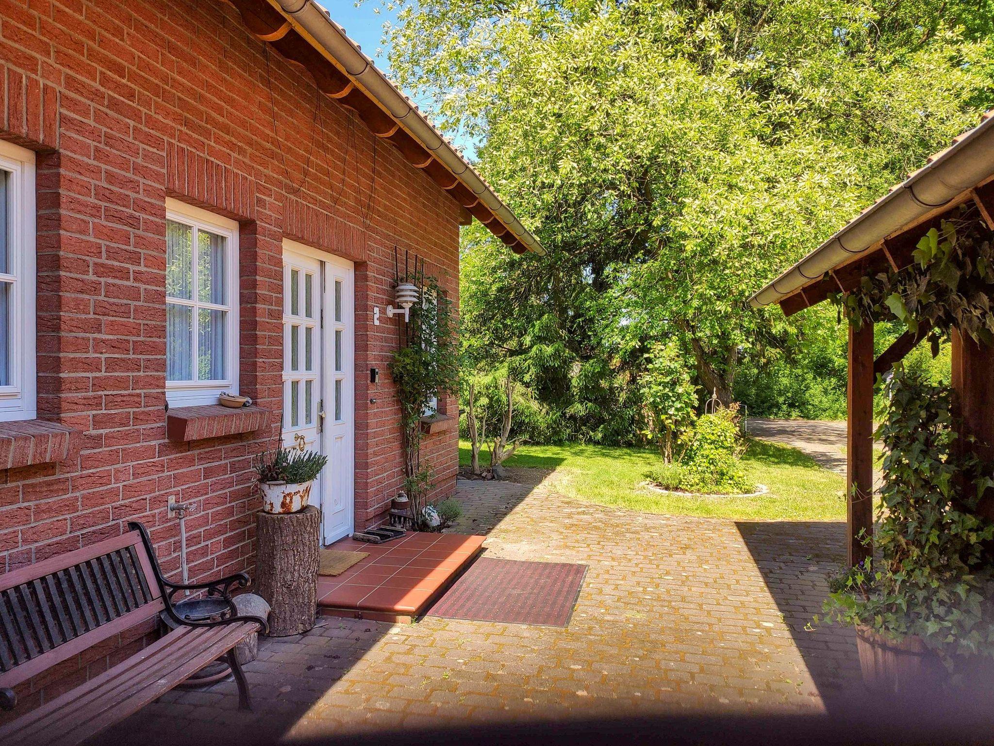 Der Garten ist liebevoll angelegt und ruhig, mit Sitzmöglichkeiten für entspannte Stunden im Freien. Ein Carport für zwei Fahrzeuge, die Lage am Waldrand und die Nähe zum Fleesensee machen den Aufenthalt angenehm unkompliziert.