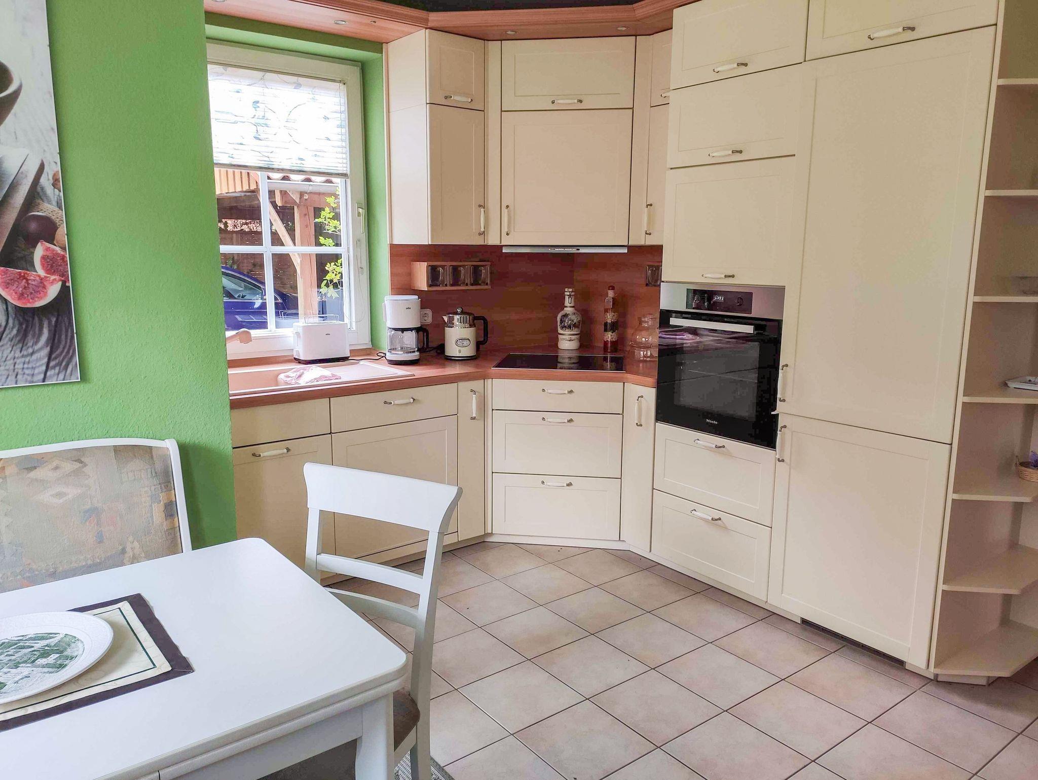 Im Erdgeschoss stehen dir ein Gäste-WC und eine separate, voll ausgestattete Küche zur Verfügung. Hier findest du Herd, Backofen, Geschirrspüler, Kühlschrank, Kaffeemaschine, Wasserkocher und eine kleine Sitzecke, ideal für den ersten Kaffee oder das gemütliche Frühstück. Von hier aus gelangst du direkt auf die Terrasse und in den idyllischen Garten. Das Wohnzimmer ist das Herzstück des Hauses: ein großzügiger Raum mit bequemer Sofaecke, Esstisch und TV. Der angeschlossene Wintergarten bietet dir zusätzlich ein lichtdurchflutetes Plätzchen mit Blick ins Grüne.
