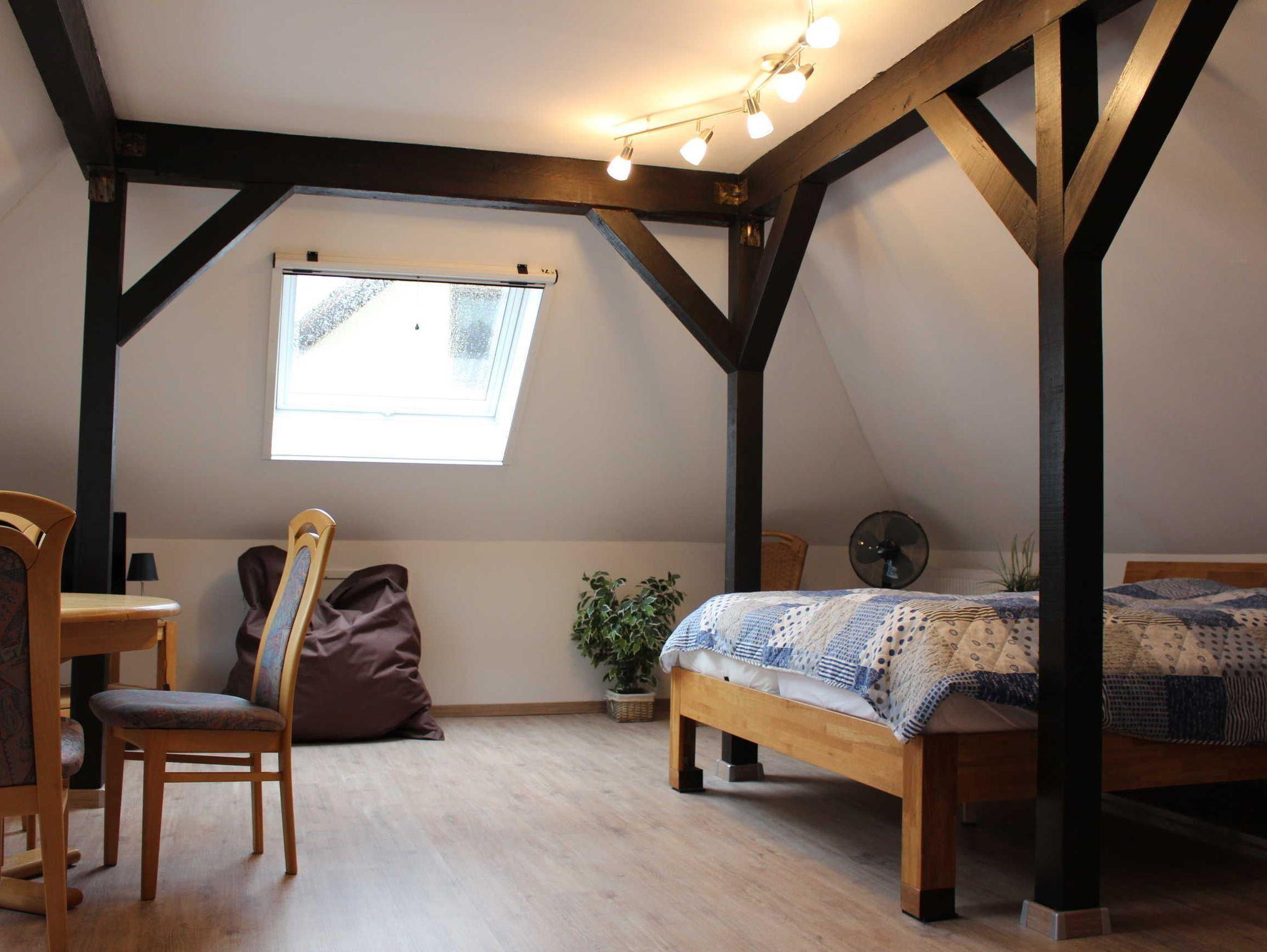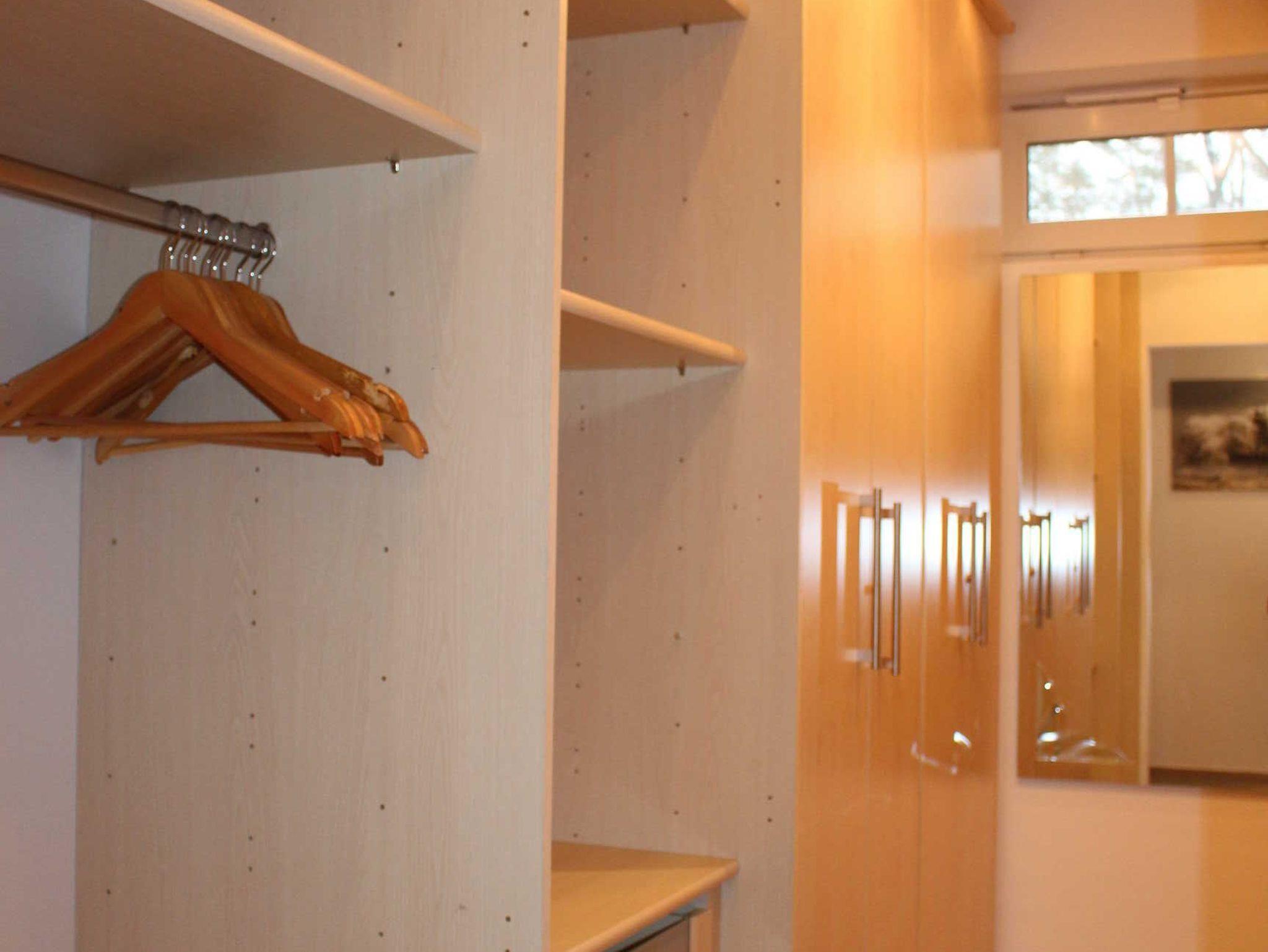Im EG unseres 2021/22 renovierten Hauses befindet sich eine kleine Diele mit Garderobe und Spiegel und ein Hauswirtschaftsraum mit Waschmaschine und Wäschetrockner sowie eine Kühl-und Gefrierkombination, welche Sie kostenlos nutzen können. In einem separaten Trakt befindet sich ein großes Schlafzimmer mit einem 2x2 m großen Bett (elektrisch verstellbar), ein Badezimmer mit ebenerdiger Dusche, Badewanne und WC. Angrenzend finden Sie einen begehbaren Kleiderschrank.