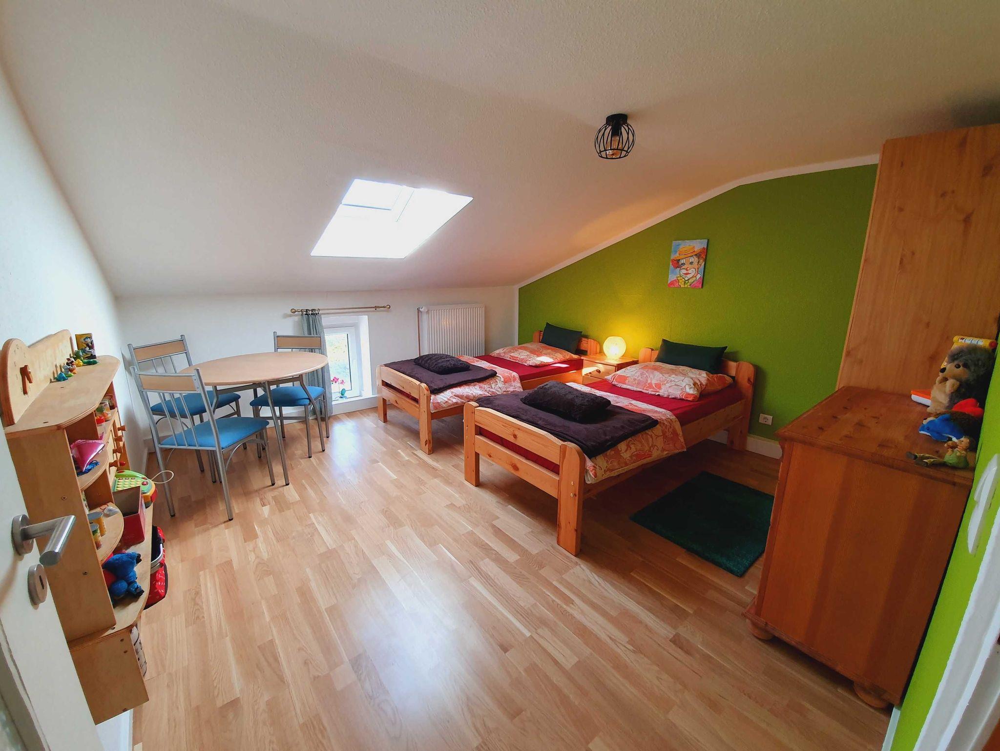 - gelbe Kammer mit 1 Einzelbett (90x200cm) & 1 Kinderbett (70x160cm, bis ca. 8 Jahre)