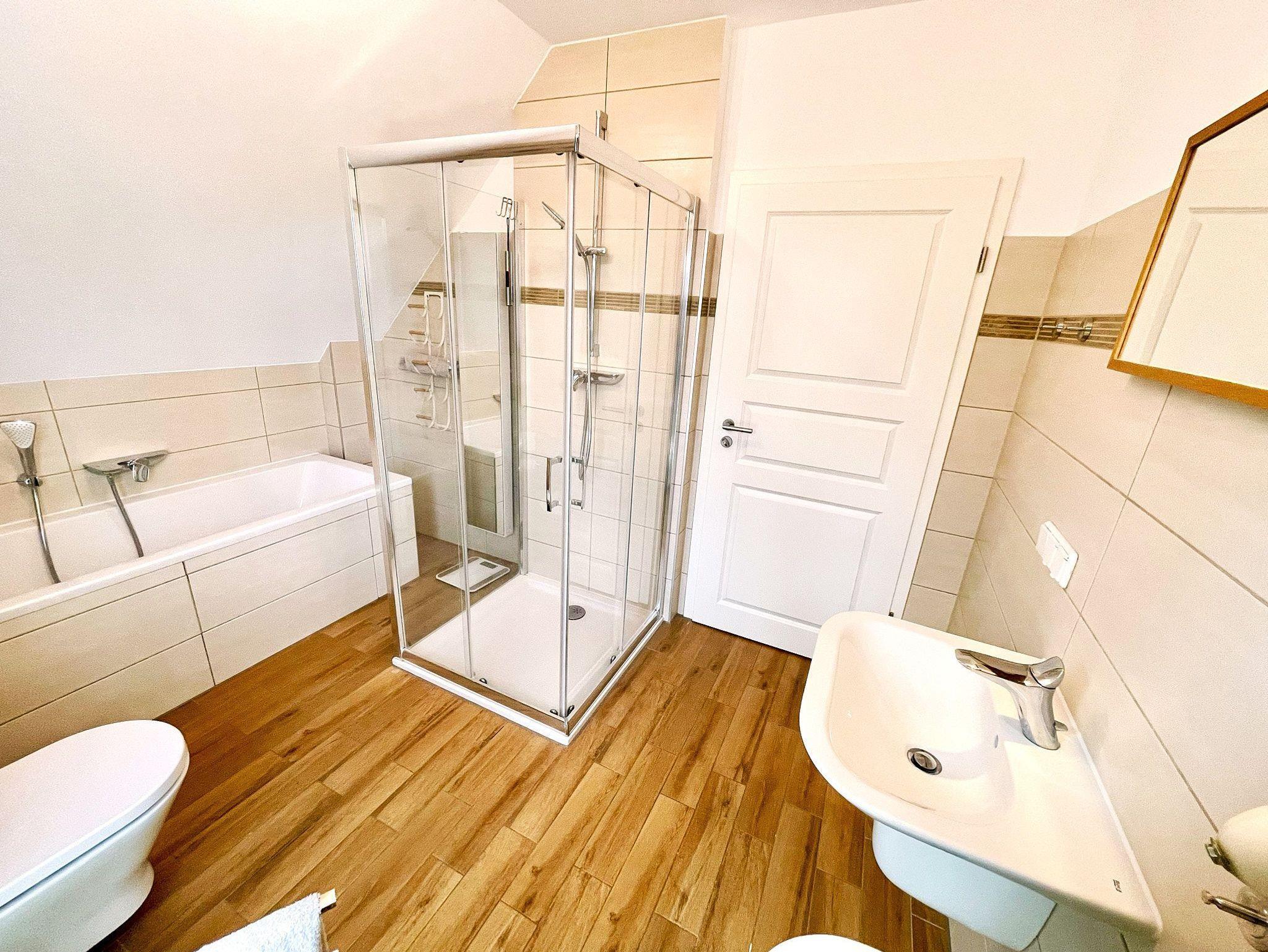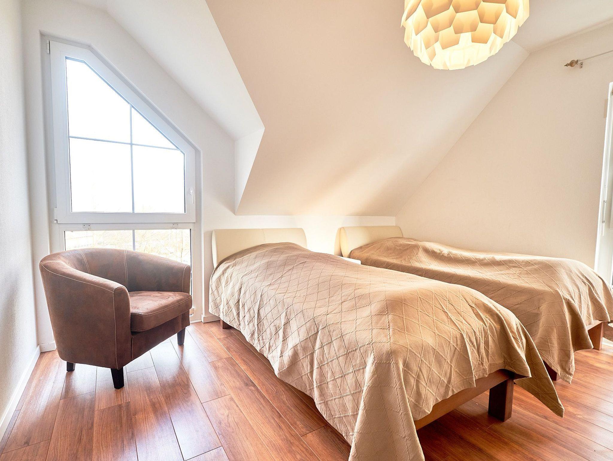 - 3 Schlafzimmer (1 Doopelbett 160x200cm, 1 Einzelbett 90x200cm und 2x Einzelbett 90x200cm), 1 Vollbad mit Dusche/Badewanne/WC und 1 WC