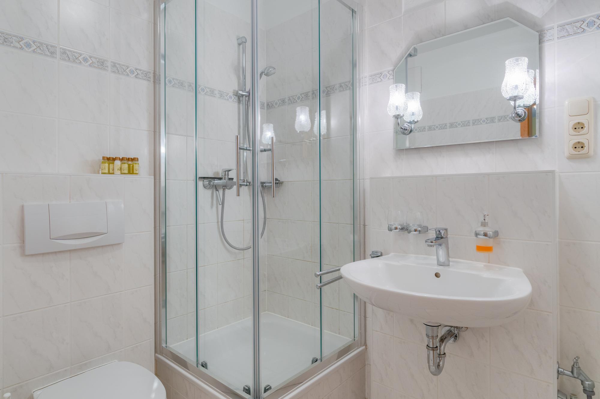 Das Badezimmer ist mit einer Dusche und WC ausgestattet.