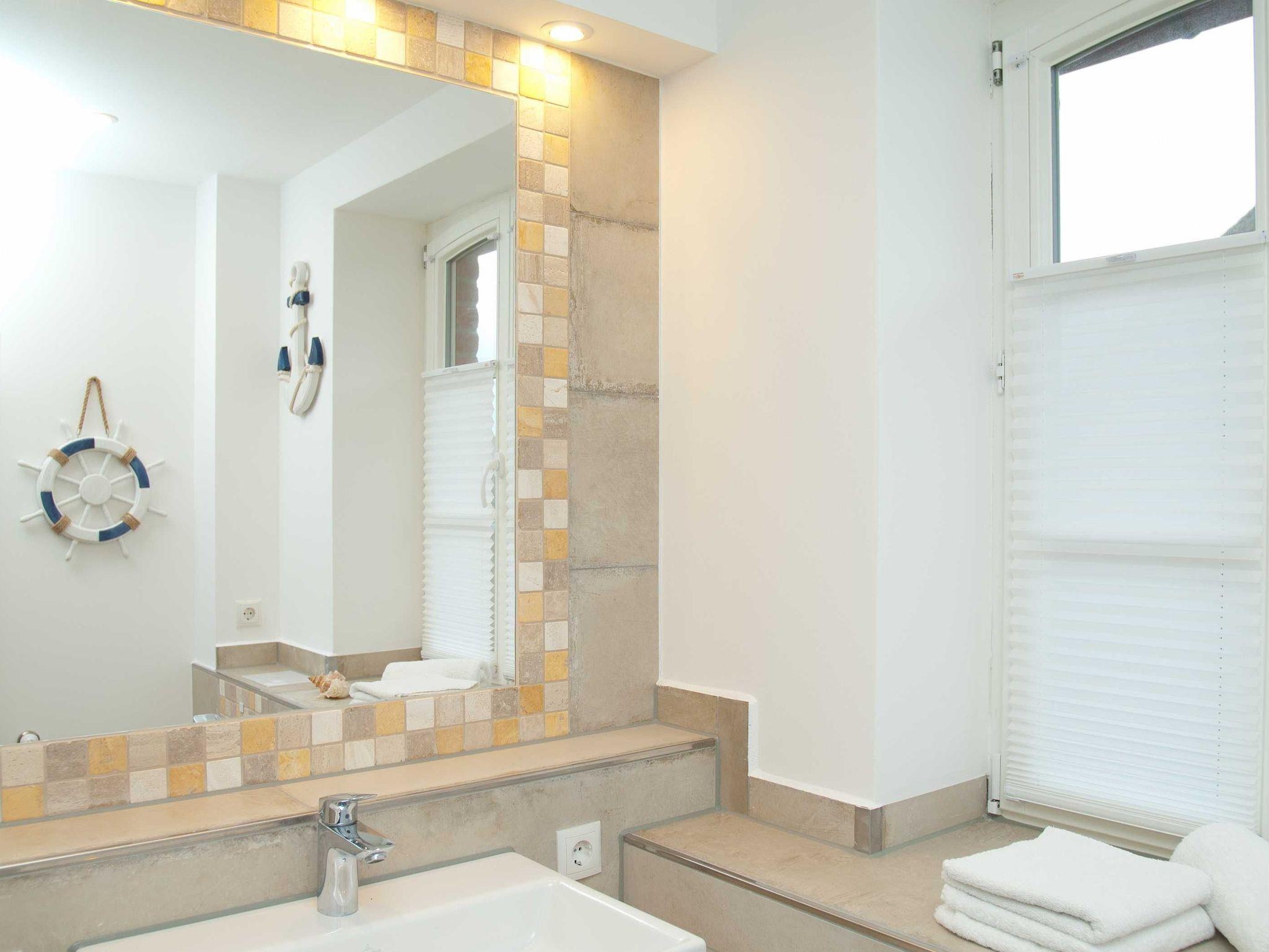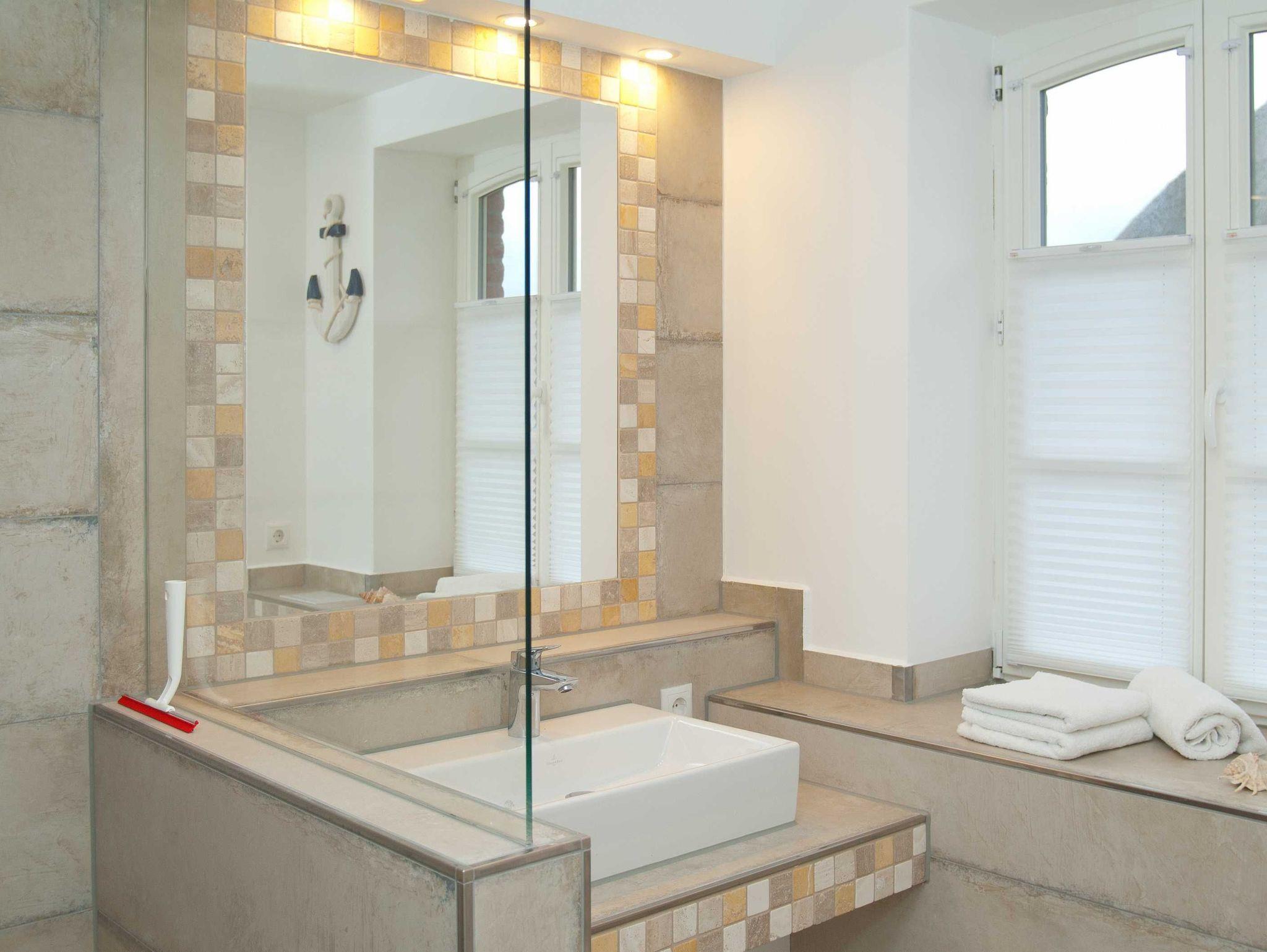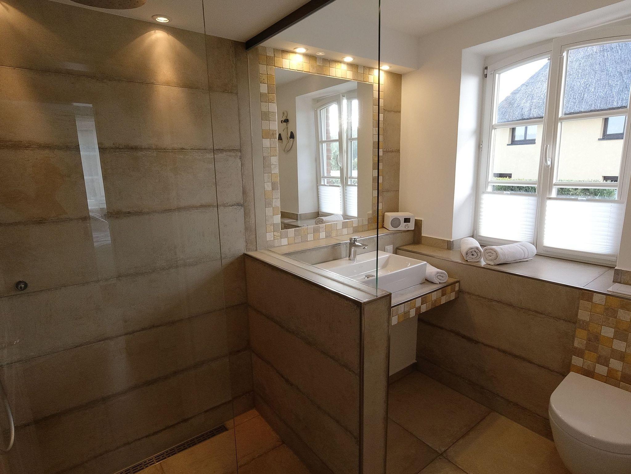 Der Badbereich mit Wellness-Regendusche bietet ausreichend Platz zum Relaxen.
