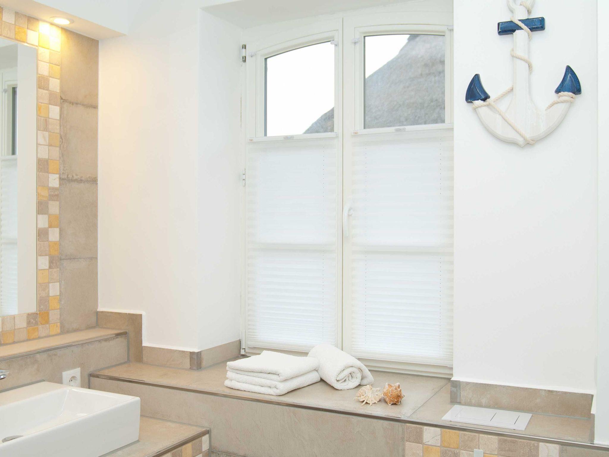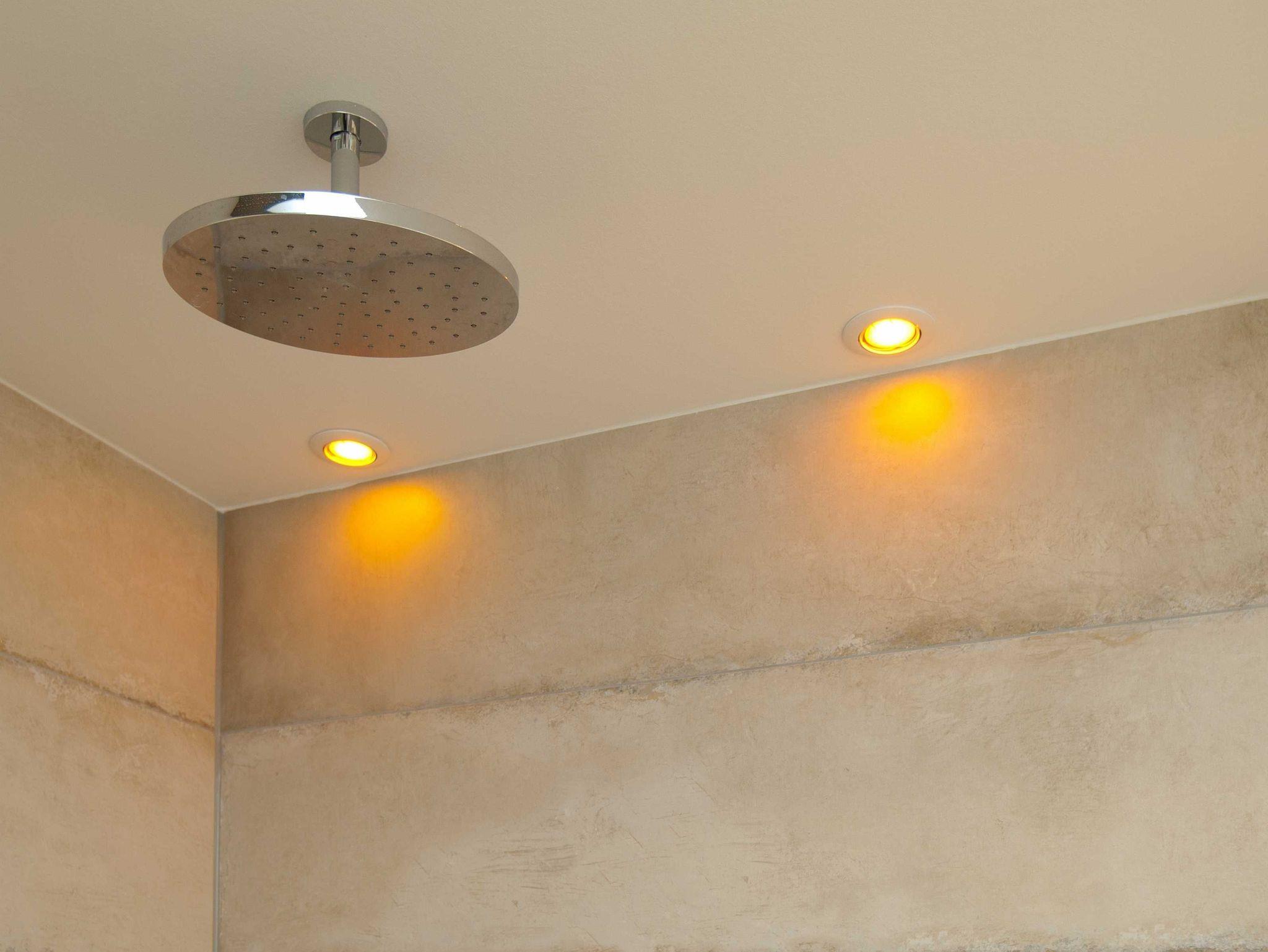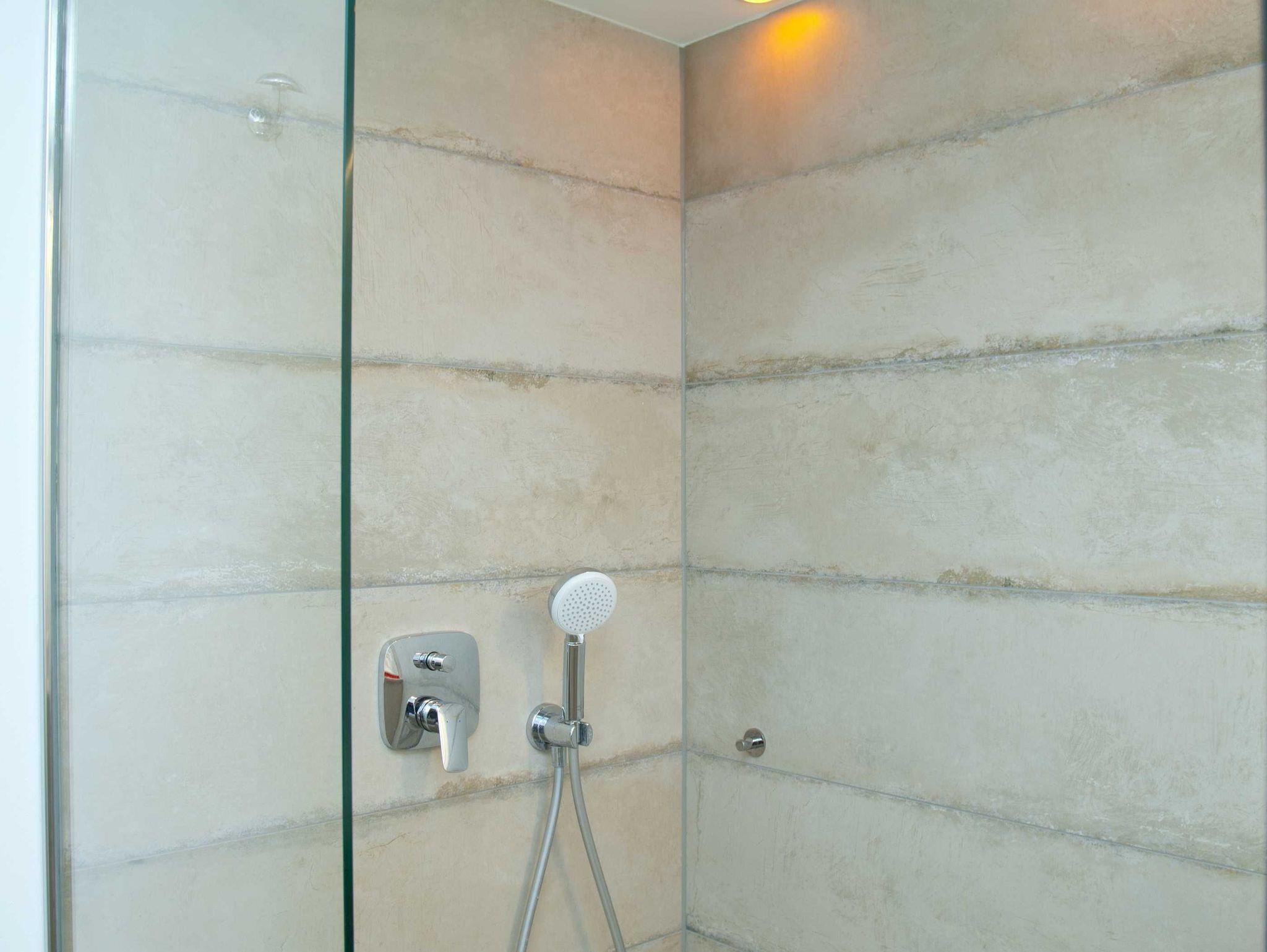 Der Badbereich mit Wellness-Regendusche bietet ausreichend Platz zum Relaxen.