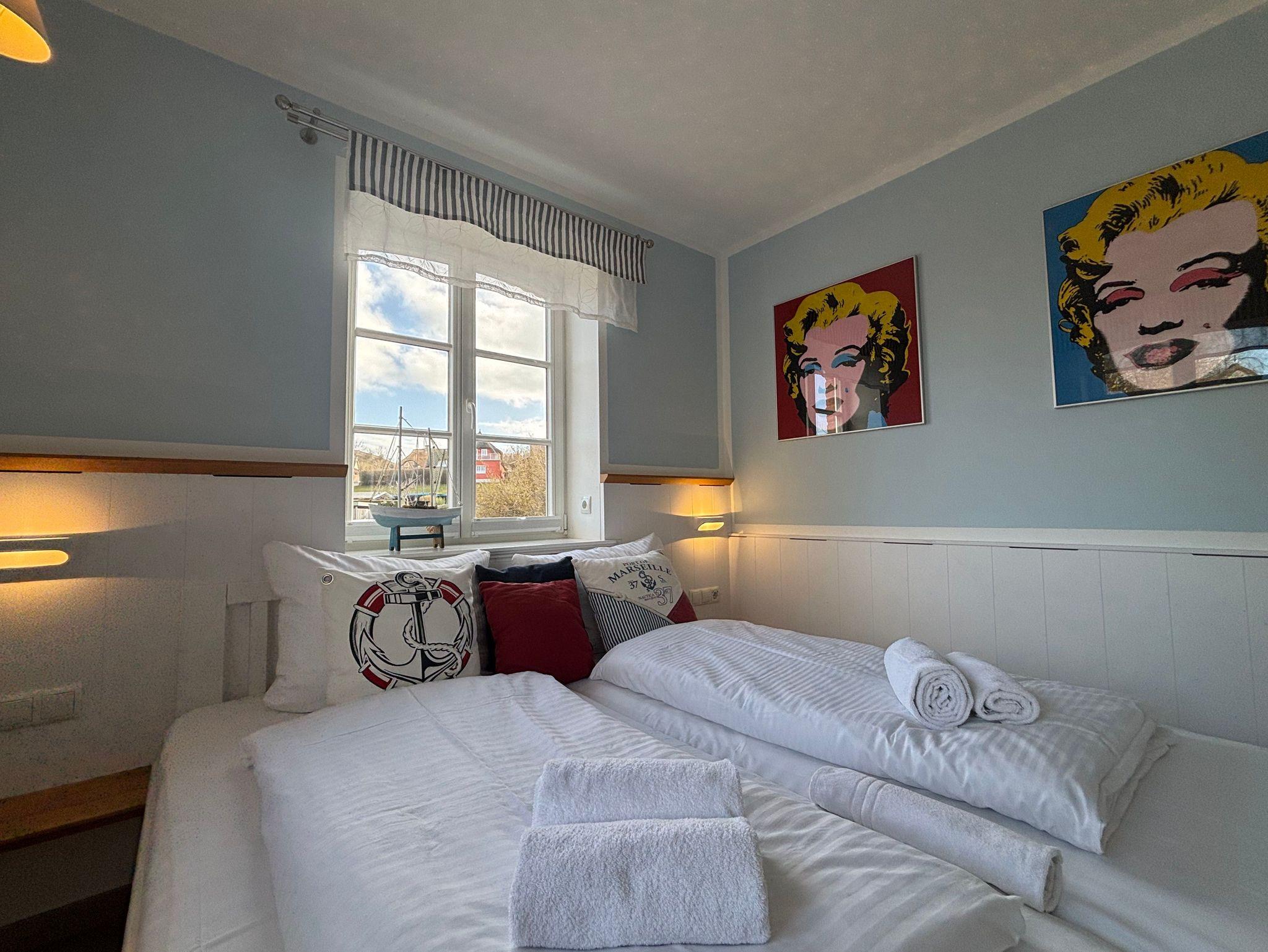 Die Schlafzimmer sind jeweils mit einem Doppelbett und Flachbild-TV ausgestattet und bieten pro Apartment Platz für bis zu 4 Personen.