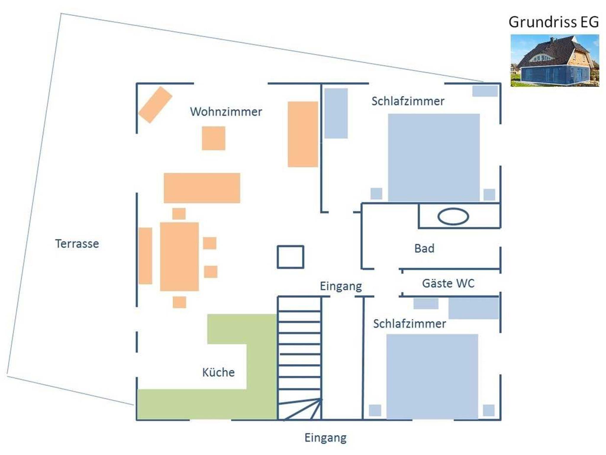 • Große Sonnenterrasse mit Strandkorb + Gartenmöbel
