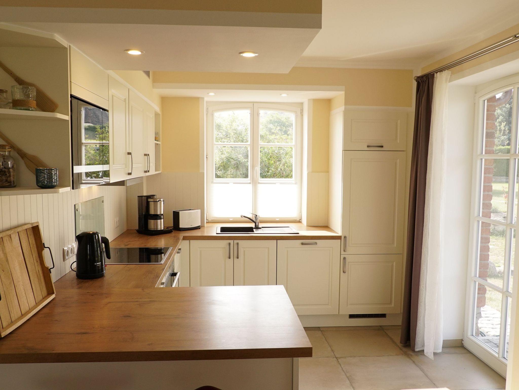 • Landhausküche mit schöner Sitzecke und Markengeräten