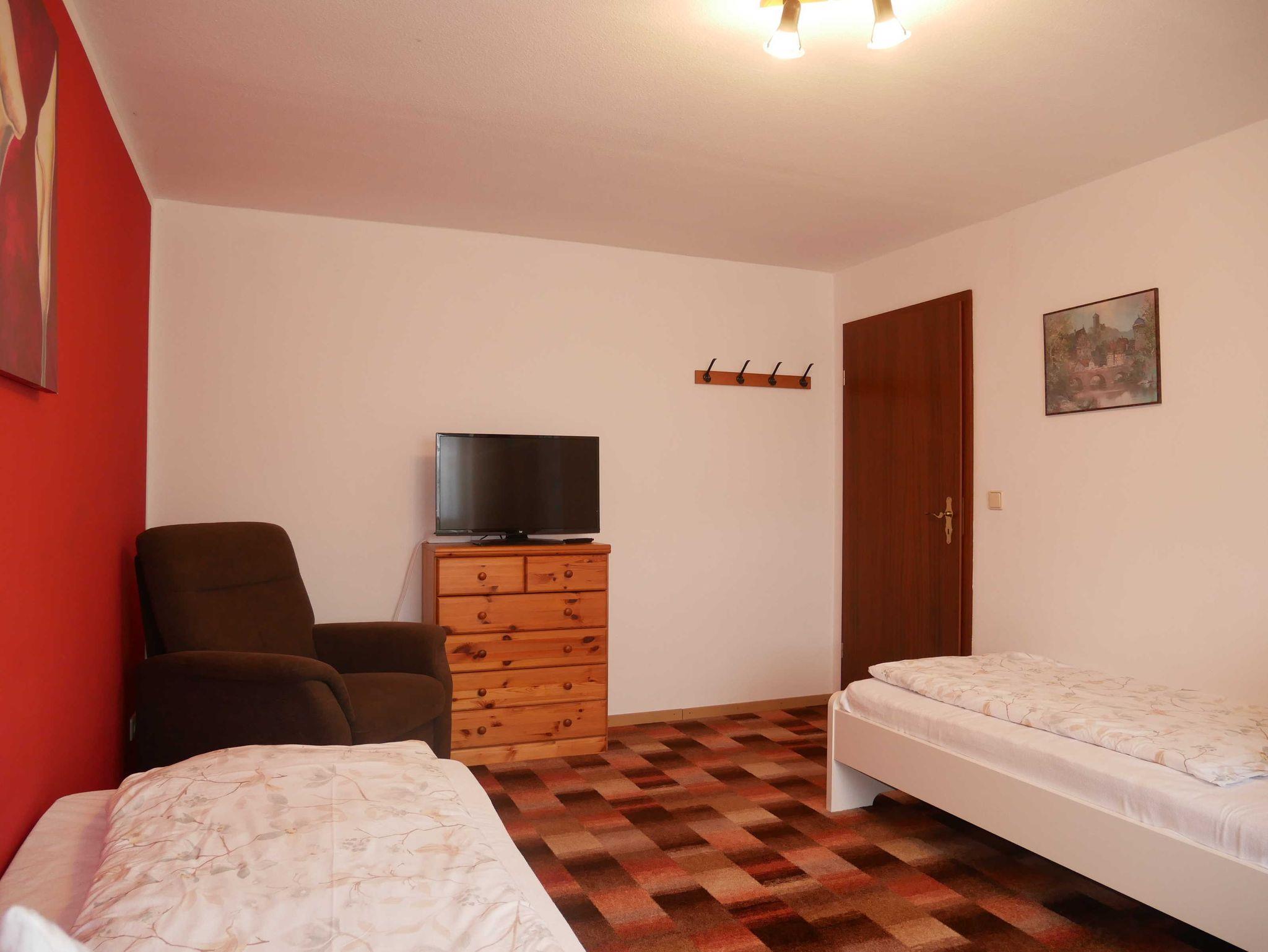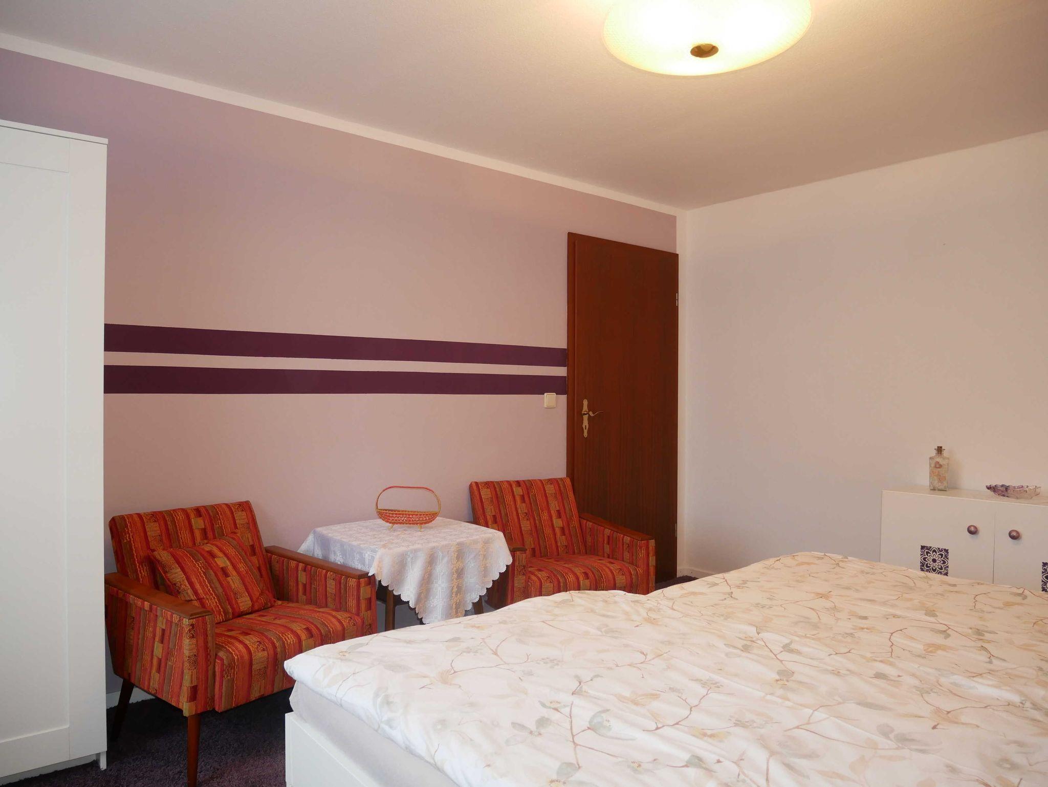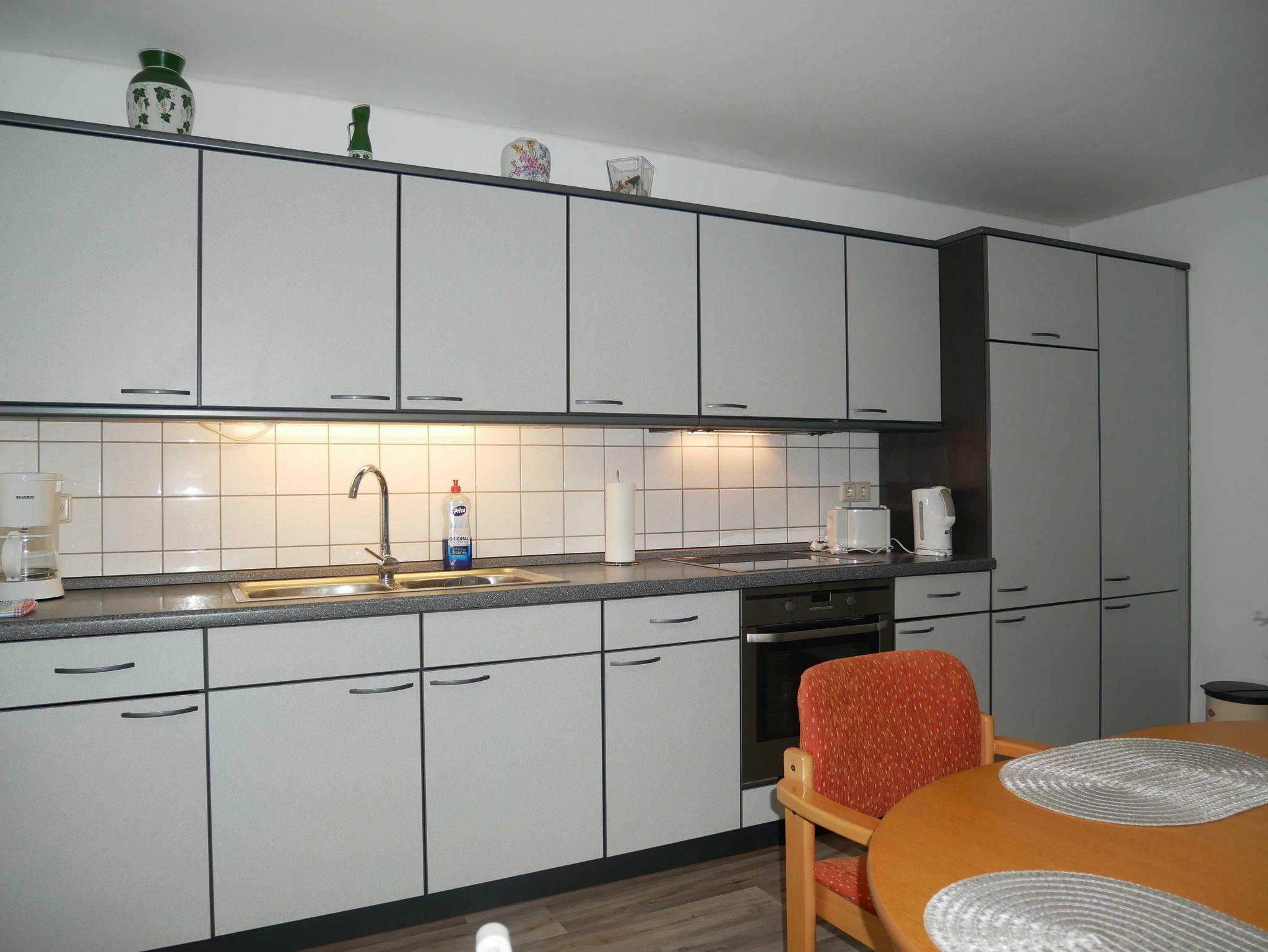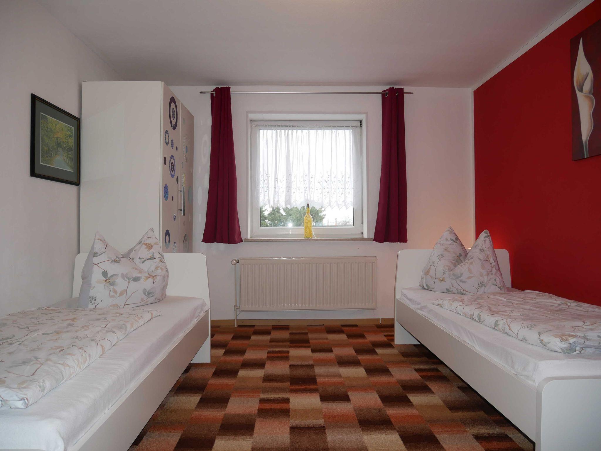Die 50m² Ferienwohnung hat einen ebenerdigen separaten Eingang. Das moderne Wohnzimmer ist mit einer Couch und mit einem Flachbildfernseher ausgestattet. Die zwei Schlafzimmer verfügen über ein Doppelbett und zwei Einzelbetten. In einem der beiden Schlafzimmer steht ein zusätzlicher Fernseher. Die große Küche ist mit Backofen, Cerankochfeld, Kühlschrank, Gefrierschrank, Mikrowelle, Toaster, Wasserkocher und mit einer Kaffeemaschine ausgestattet. Am Tisch finden Sie genügend Platz für 4 Personen. Das Badezimmer verfügt über eine ebenerdige Dusche. Die Toilette ist vom Badezimmer getrennt. Die Erstausstattung Bettwäsche ist im Preis bereits enthalten. Es sind KEINE Handtücher vorhanden. Bitte bringen Sie Ihre Handtücher mit.