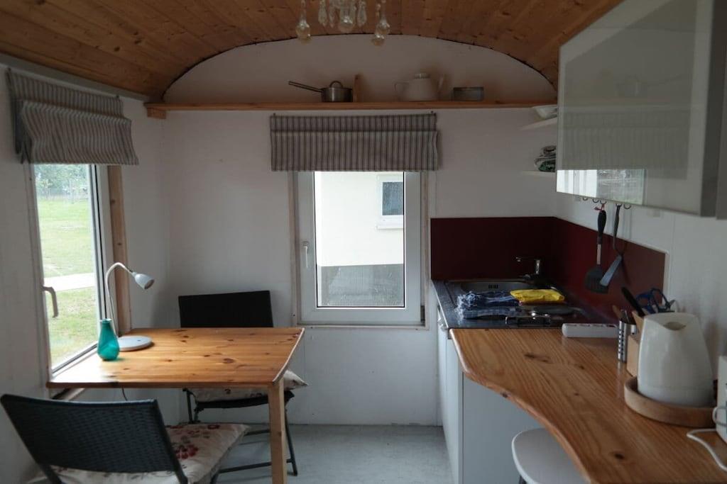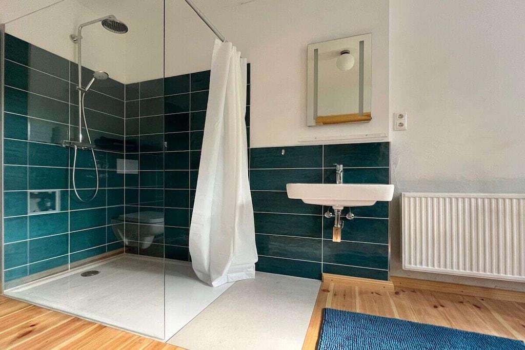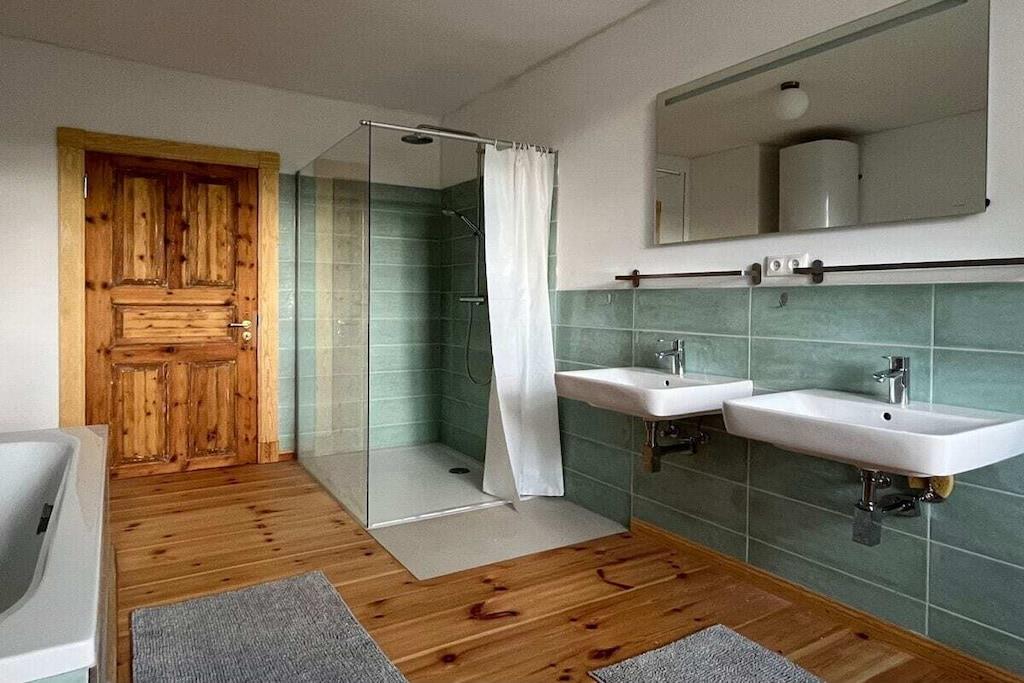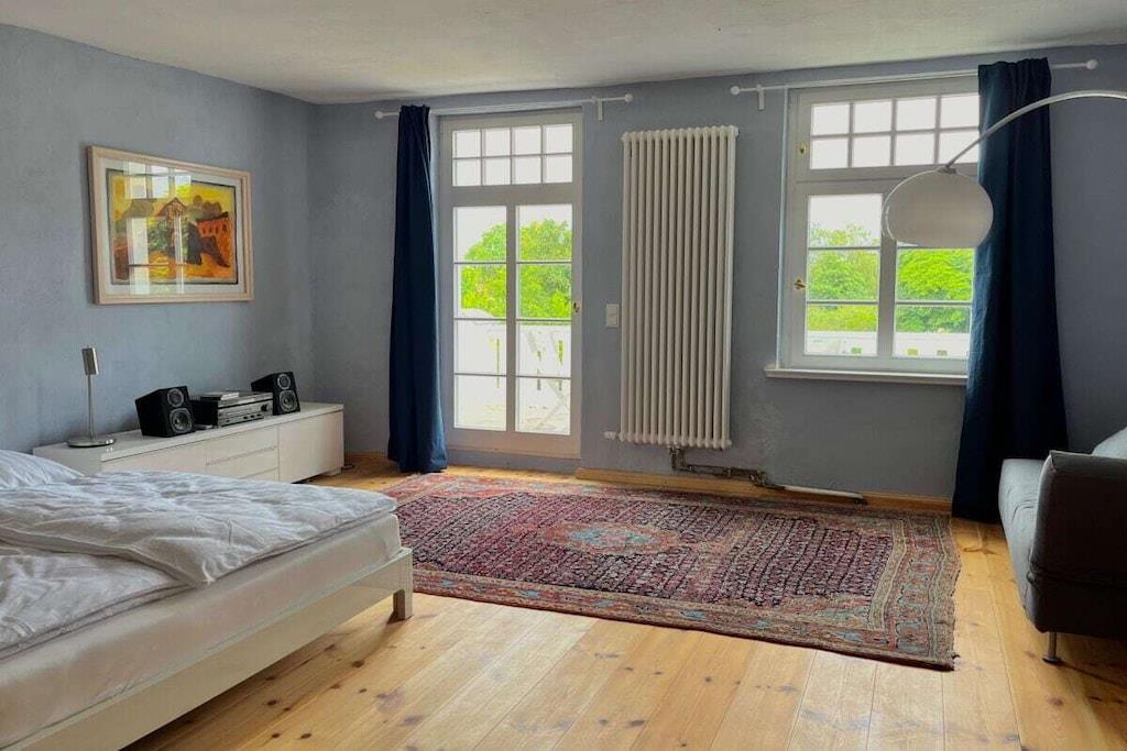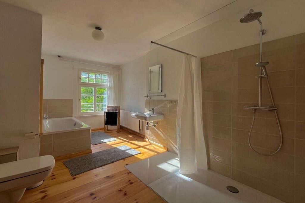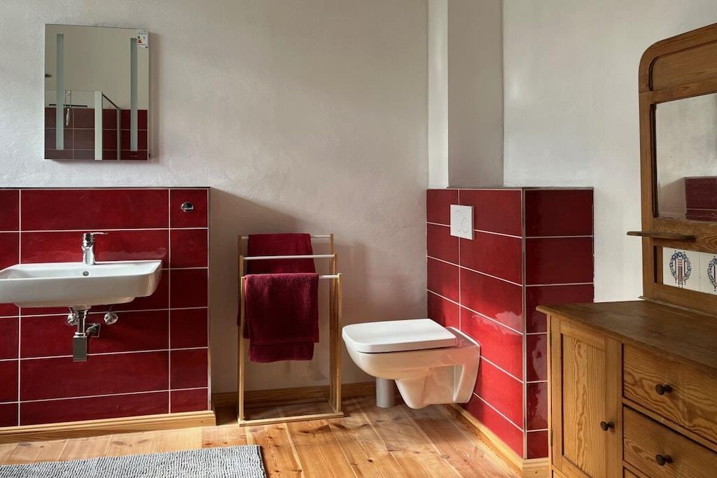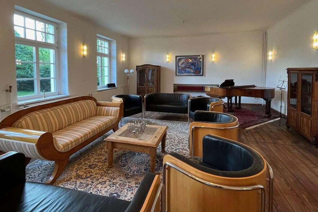 Das Wohnzimmer bietet reichlich Sitzgelegenheiten, und einen alten Flügel, der gerne bespielt wird (wenn er denn "in Stimmung" ist. Das helle Esszimmer bietet reichlich Platz fürs gemeinsame Speisen, ein kleiner Teeraum schließt sich daran an. Die Schlafzimmer haben wir mit einer Mischung aus Antiquitäten, neueren Möbeln und Fundstücken ausgestattet. Ein Schlafzimmer im Obergeschoss und das Schlafzimmer im Erdgeschoss haben eigene Bäder. Außerdem sind im Obergeschoss zwei Bäder jeweils mit Badewanne vom Flur aus erreichbar. Und im Erdgeschoss liegt noch unsere farbenfrohe Gästetoilette. Das Haus verfügt über einen Balkon, der einen schönen Blick auf die umliegende Landschaft bietet. Im Garten können Sie den Tag über der Sonne folgen, bis Sie abends auf der Veranda auf der Rückseite des Hauses die Abendsonne genießen. Auf der Vorderseite des Hauses haben wir im Garten einen Bouleplatz angelegt, falls Sie eine ruhige Kugel schieben wollen. Ein Sitzplatz unter der alten Trauerweide lädt zum Grillen oder Feuermachen ein. Das Ferienhaus ist für Nichtraucher und bietet eine allergenarme Umgebung. Es ist das perfekte Zuhause für Familien, Freunde und Gruppen, die eine entspannte Auszeit in der Natur suchen.