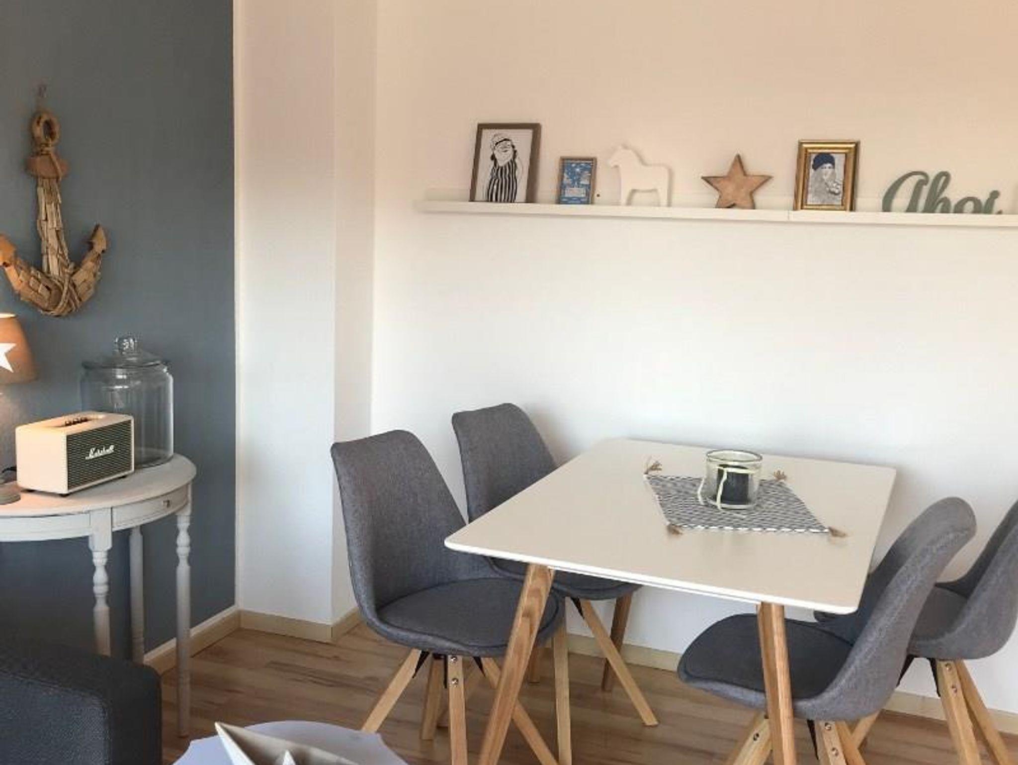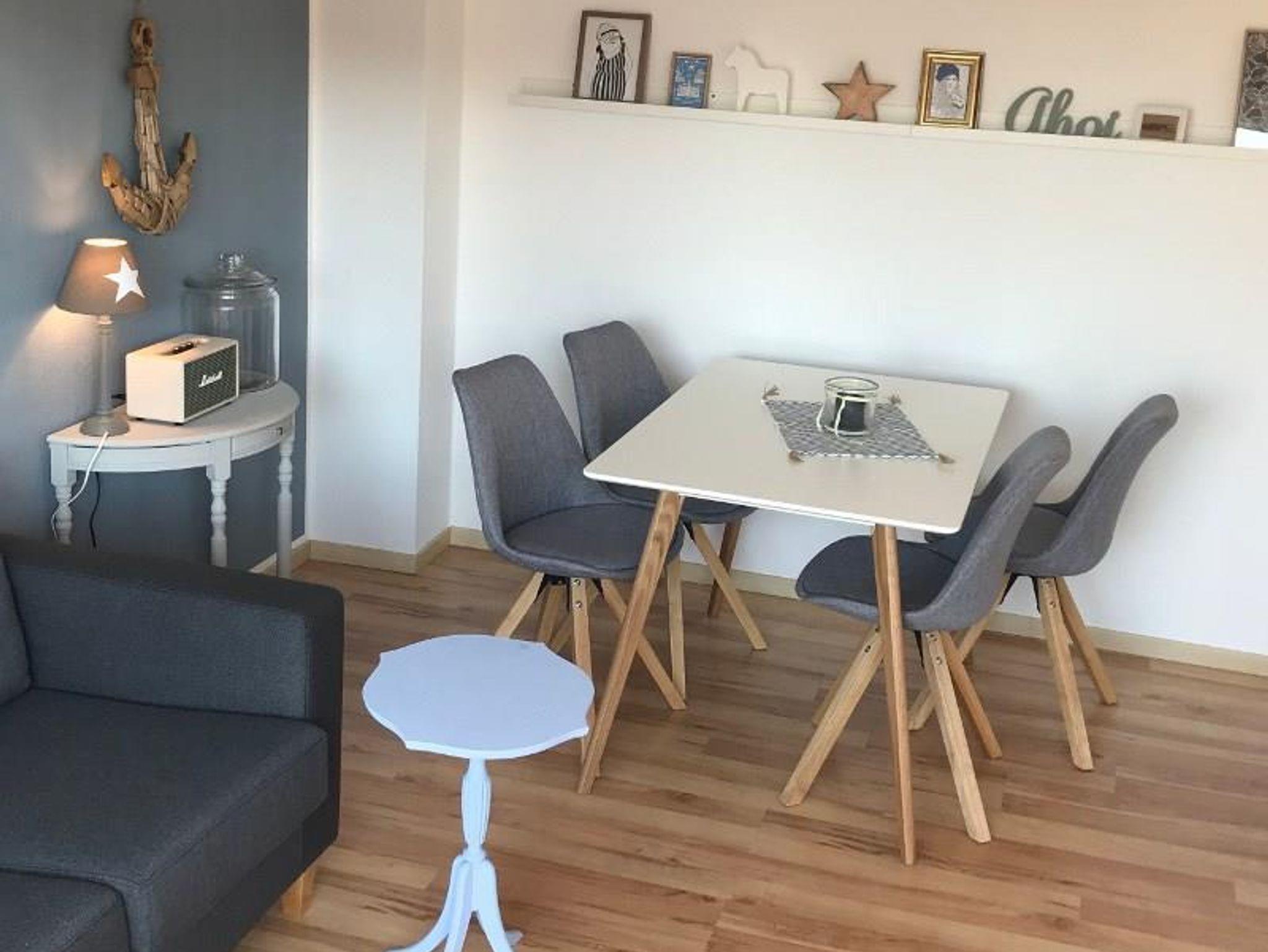 Die Wohnung ist ausgestattet für 4 Personen und hat 2 Schlafräume. Das erste Schlafzimmer hat ein Doppelbett mit Blick in die Sterne und im zweiten stehen 2 Einzelbetten zur Verfügung. Das lichtdurchflutete Wohnzimmer hat einen separaten Essplatz und einen Zugang zum großen möblierten West-Balkon. Die modern eingerichtete Küche verfügt über eine Spülmaschine, Backofen, Ceran-Kochfeld und allen Gebrauchsgegenständen zur Selbstversorgung. Das Duschbad ist hell und freundlich gestaltet und wurde frisch saniert, ebenfalls gehört ein Fön mit zur Grundausstattung. WLAN steht Ihnen kostenfrei zur Verfügung.