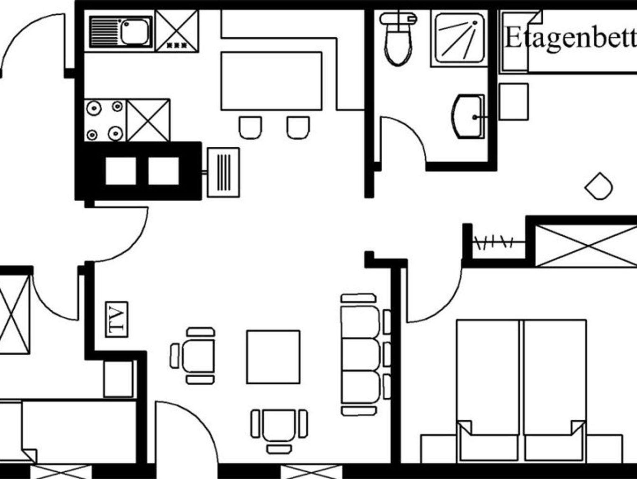 Die offene Küche ist vollständig ausgestattet und umfasst einen Elektroherd mit Backofen, eine Spülmaschine, Kühlschrank mit Gefrierfach, Mikrowelle, Kaffeemaschine, Wasserkocher, Toaster sowie alle benötigten Küchenutensilien und Geschirr. Am Esstisch im dazugehörigen Essbereich genießen Sie gemeinsame Mahlzeiten.