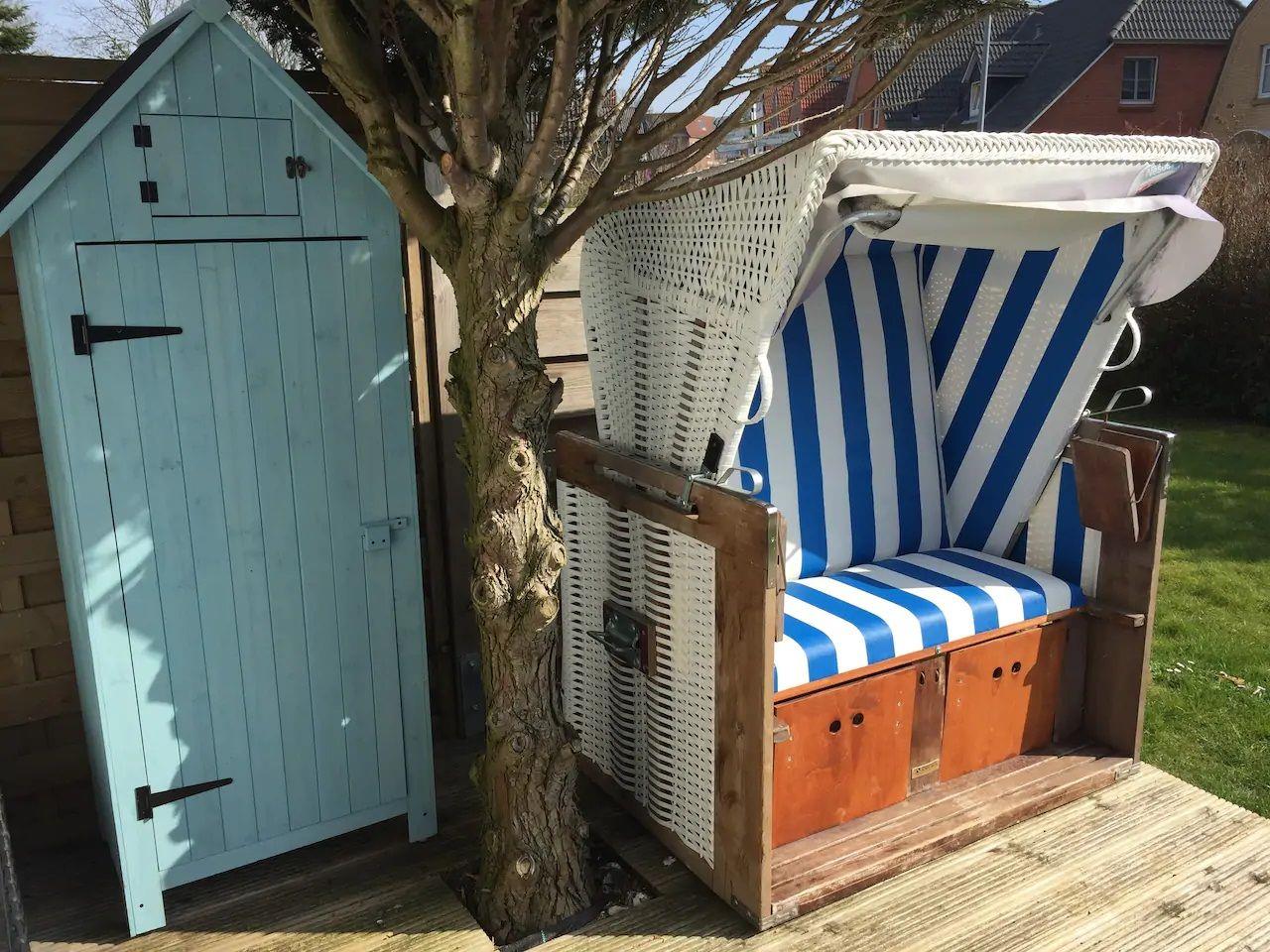 Vom Wohnzimmer aus gelangen Sie direkt auf die große Südterrasse und Grünfläche, die uneinsehbar von außen ist. Hier können Sie im Strandkorb, auf Gartensesseln oder Relaxliegen bis in den Herbst hinein entspannen und die Sonne genießen. Für das Grillen steht ein massiver Grill bereit und für Fahrräder gibt es einen Schuppen.