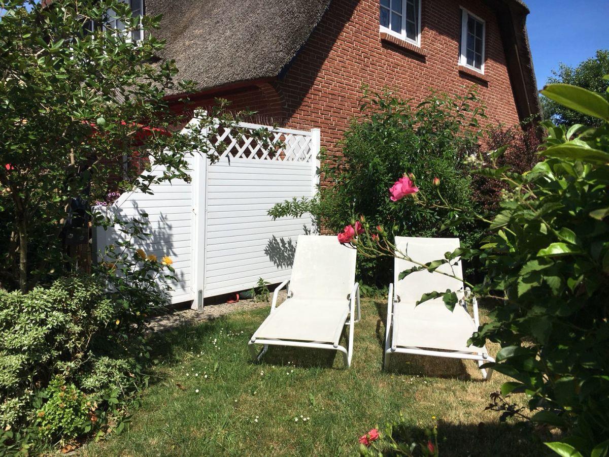Es erwartet Sie ein neu renoviertes Hausteil in einer kleinen Reethausanlage. Die Terrasse uneinsehbar bepflanzt und ein kuscheliges Eckchen daneben zum Entspannen im Strandkorb oder auf den Sonnenliegen.