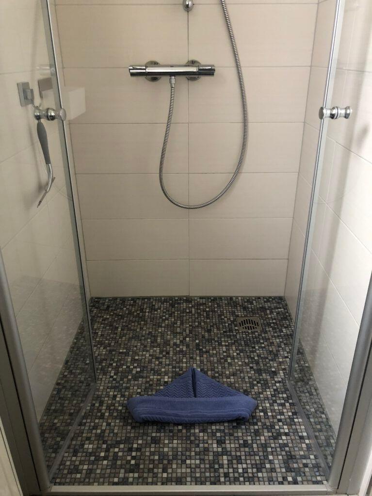 Duschbad mit ebenerdiger Dusche, Föhn.
