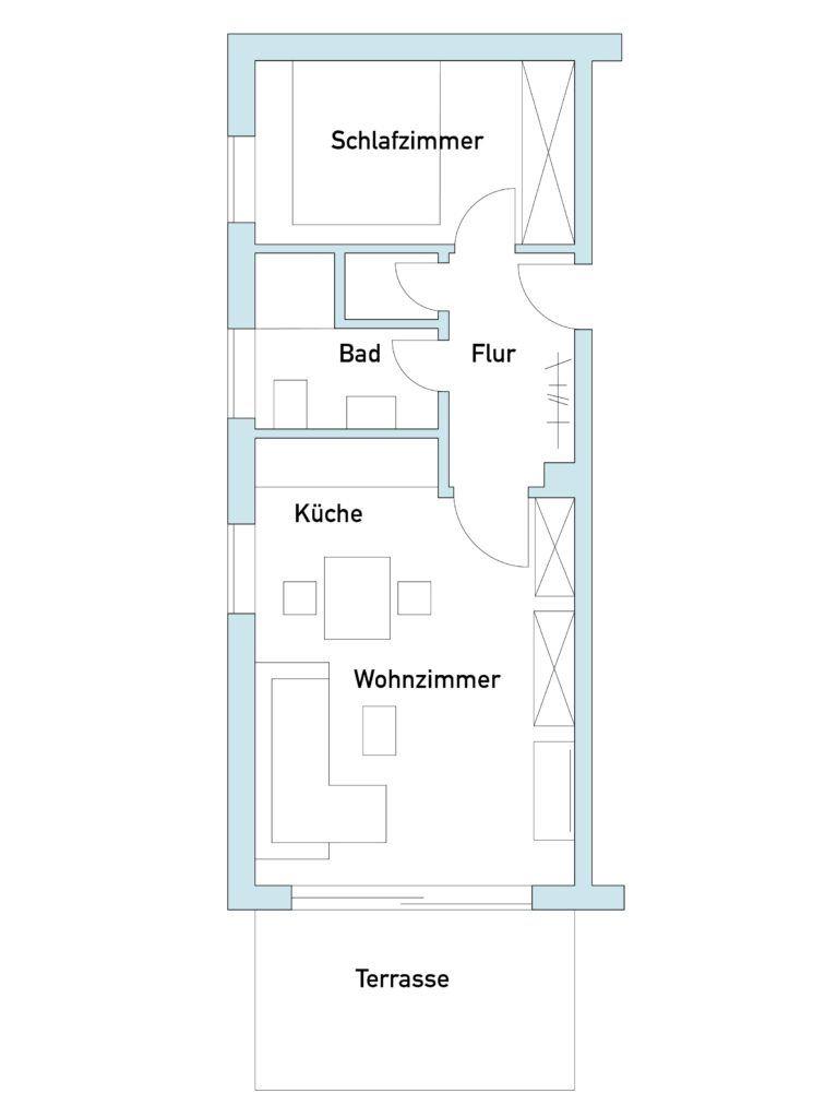 Die Ferienwohnung verfügt über einen hellen Wohnbereich mit Sofa, Essbereich, SAT-TV und offener Küche mit Geschirrspülmaschine, sowie Kühlschrank mit Gefrierfach, ein SchIafzimmer mit Doppelbett und Duschbad. Auf der Terrasse können Sie die Abende gemütlich ausklingen lassen. Vor dem Haus befindet sich ein Parkplatz.