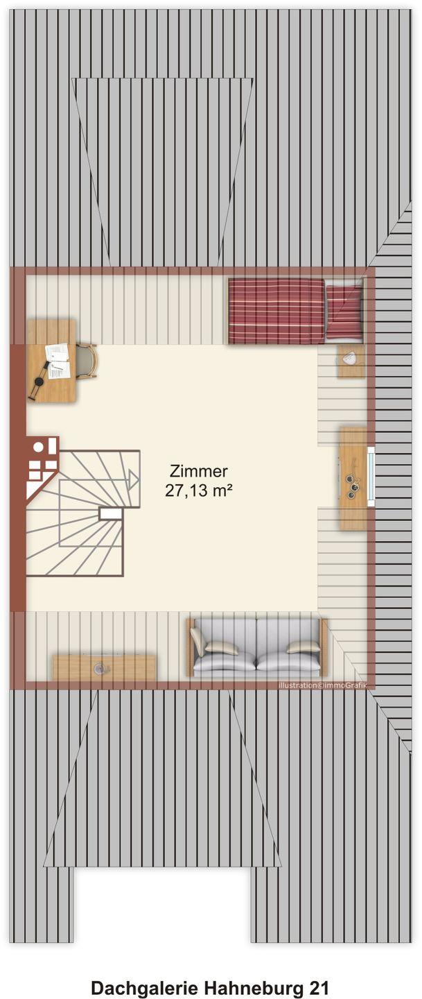 große Galerie mit Einzelbett (80cm) zum Relaxen oder als Schlafmöglichkeit für eine 3. Person