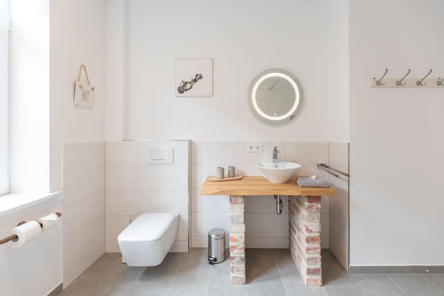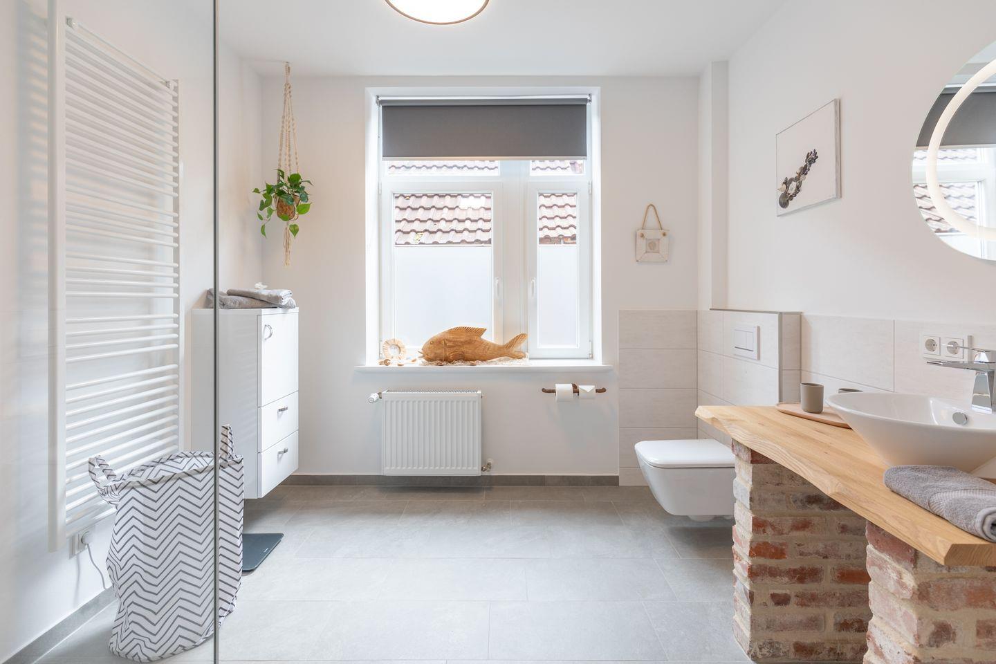 Das chic designte Bad mit Walk-In Dusche und WC runden das Bild ab.