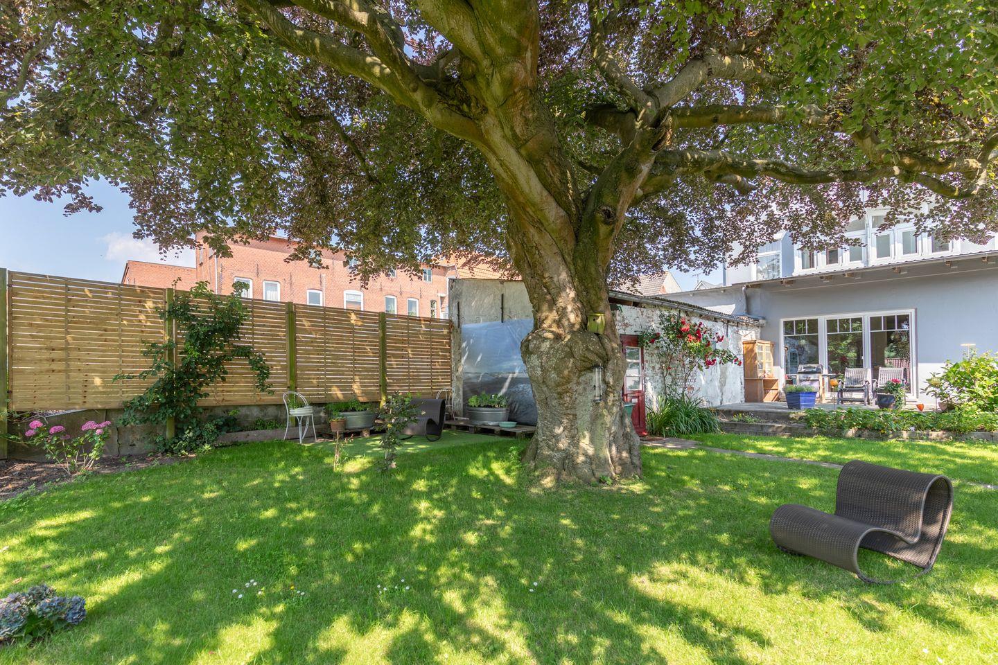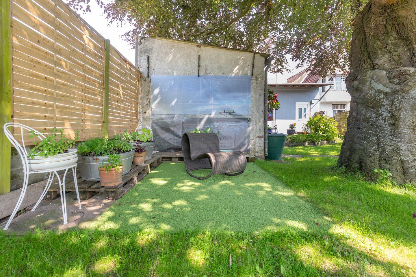 Im Hinterhof lädt ein herrlicher Garten mit einer großen, schattenspendenden Rotbuche zum Verweilen ein. Der Garten, die Außensitzplätze und der Strandkorb stehen allen Ferienwohnungen zur Verfügung und können gerne von Ihnen genutzt werden.