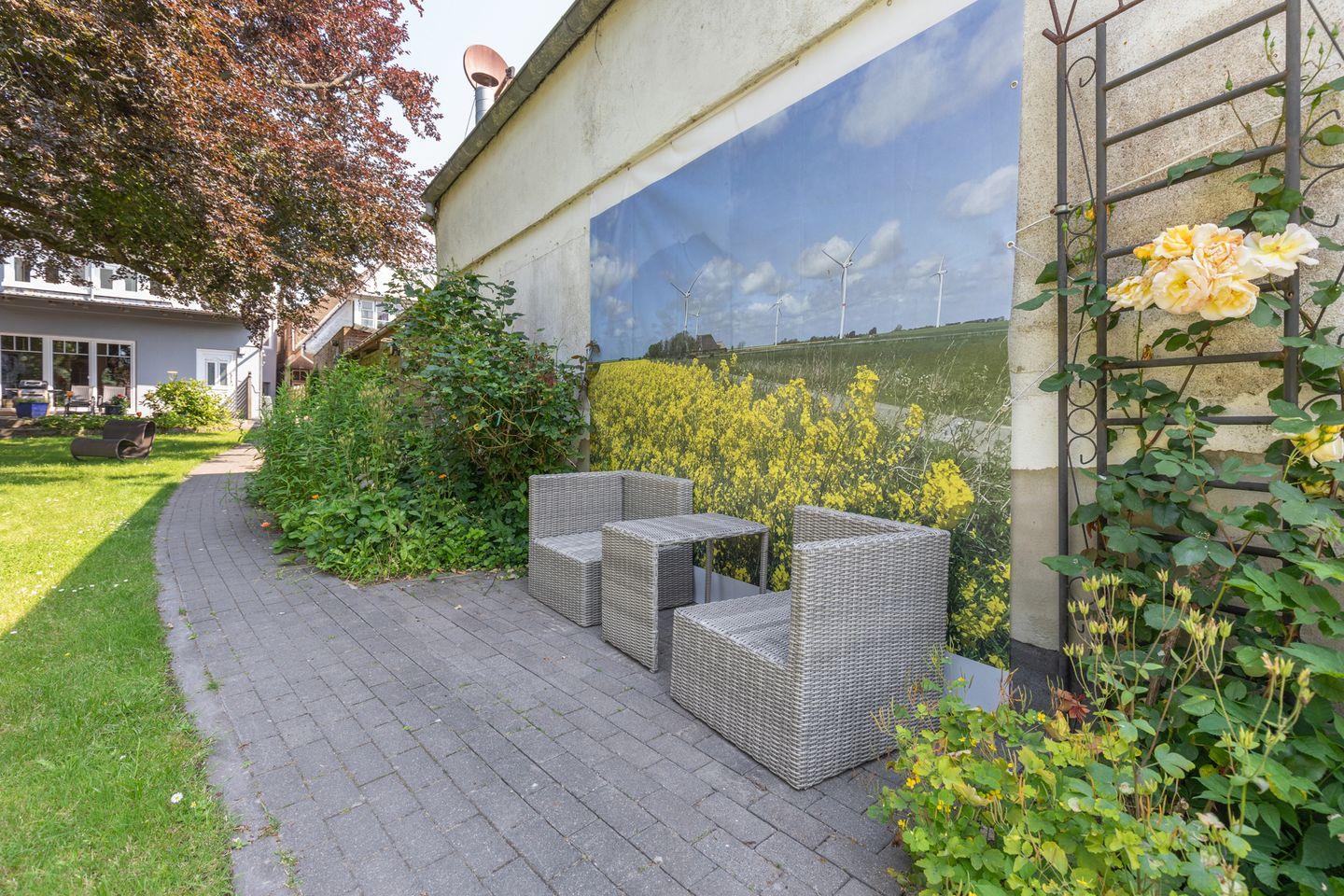 Erleben Sie "Ellis groot Stuuv" in Garding, ein gemütliches 65 qm Apartment für bis zu vier Personen. Genießen Sie ein stilvolles Wohnzimmer, eine voll ausgestattete Küche und ein Schlafzimmer mit Doppelbett. Entspannen Sie auf der Loggia oder im Garten mit Rotbuche und Strandkorb. Die Wohnung bietet kostenloses WLAN, Fahrradgarage und Parkplatz. Nur 15 Minuten von St. Peter-Ording entfernt, perfekt für einen erholsamen Nordseeurlaub. Bettwäsche und Handtücher inklusive.