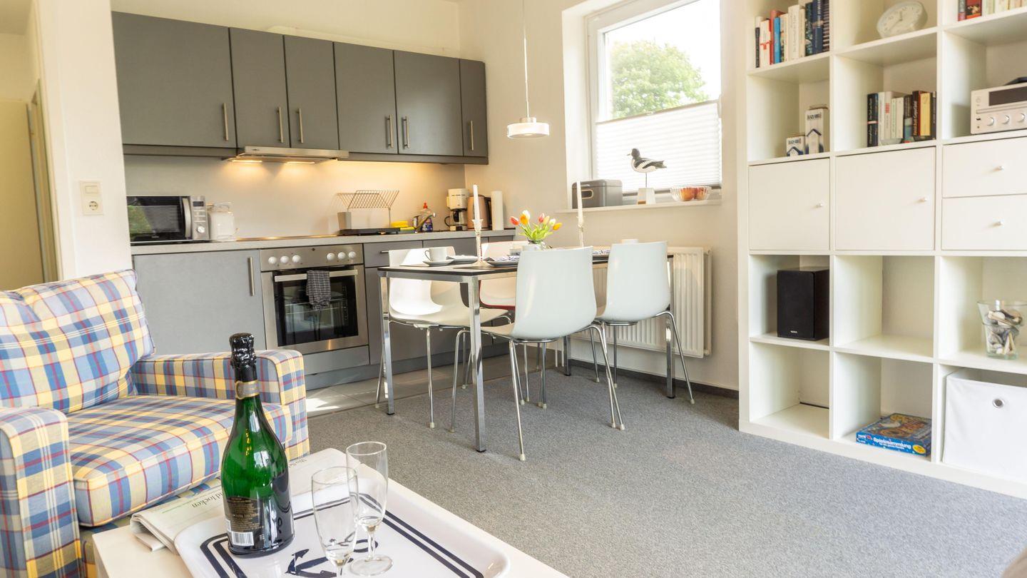 Die Wohnung überzeugt durch ihre praktische Raumaufteilung und gemütliche Einrichtung. Im Wohnzimmer erwarten Sie eine Sofaecke mit Sessel, ein Fernseher mit Satellitenanschluss, HiFi-Anlage, CD-Spieler sowie Bücher und Spiele für die ganze Familie.