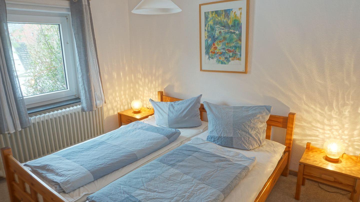 Die drei separaten Schlafzimmer bieten unterschiedliche Schlafmöglichkeiten ( 1x Doppelbett 180er Breite, 1x Einzelbett mit 90er Breite, 1x Etagenbett für 2 mit 90er Breite) , sodass Sie flexibel auf Ihre Reiseplanung eingehen können. Das Hauptschlafzimmer ist mit einem Teppichboden ausgestattet und verspricht eine behagliche Atmosphäre. Für junge Gäste stehen ein Babybett und ein Hochstuhl bereit, diese können bei Verfügbarkeit aus dem Gemeinschaftsflur entnommen werden.