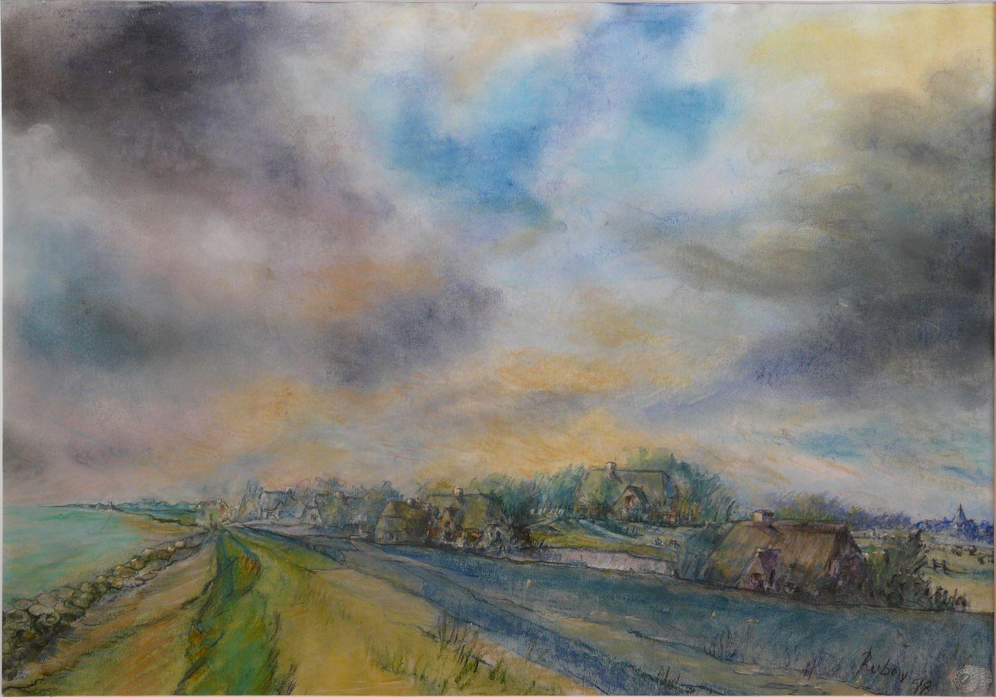 Alle Räume erhalten ihre besondere Note durch die Bilder von Gerhard Rubow. Es sind vornehmlich Landschaftsmotive der Nordseeküste.