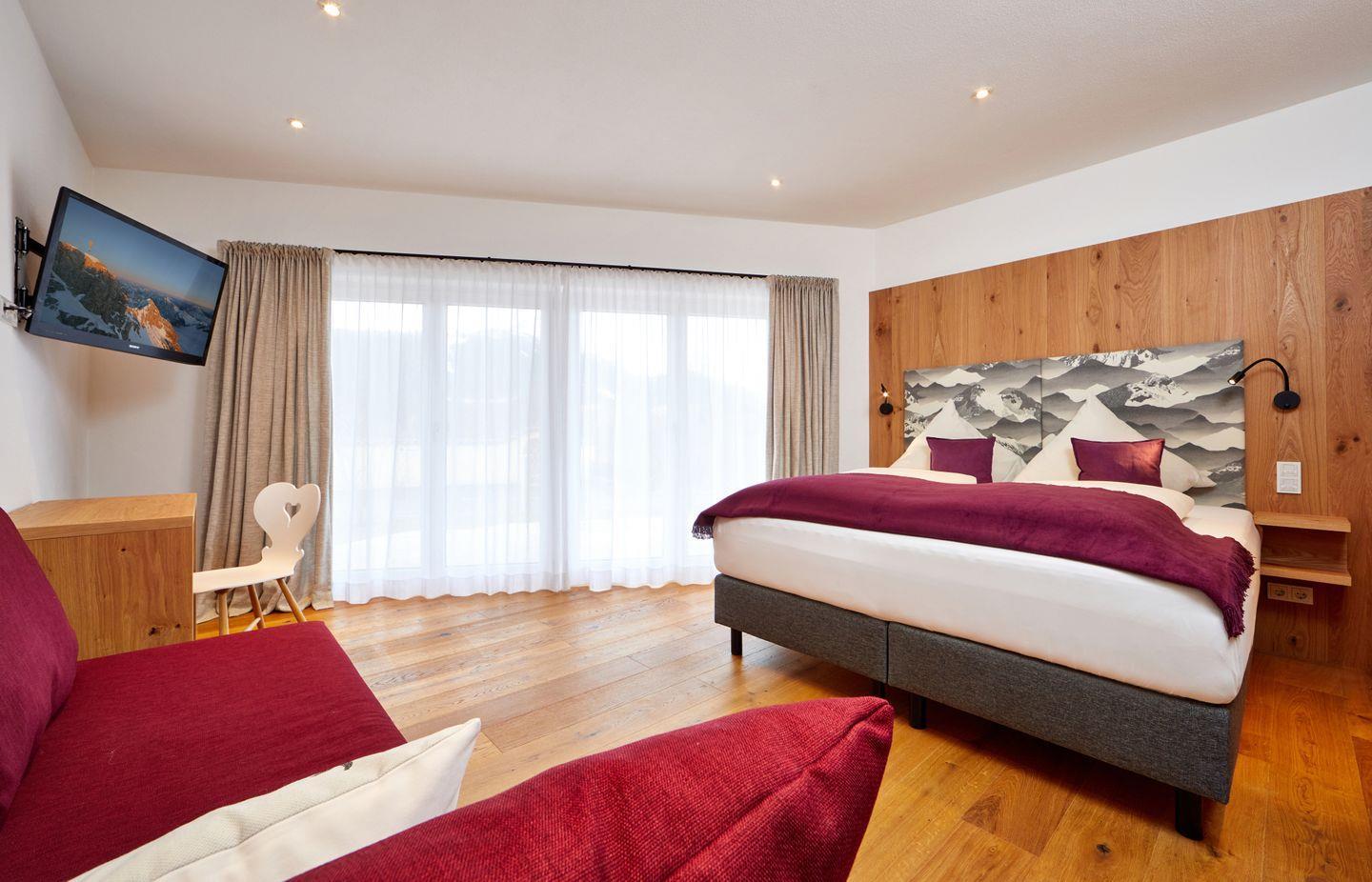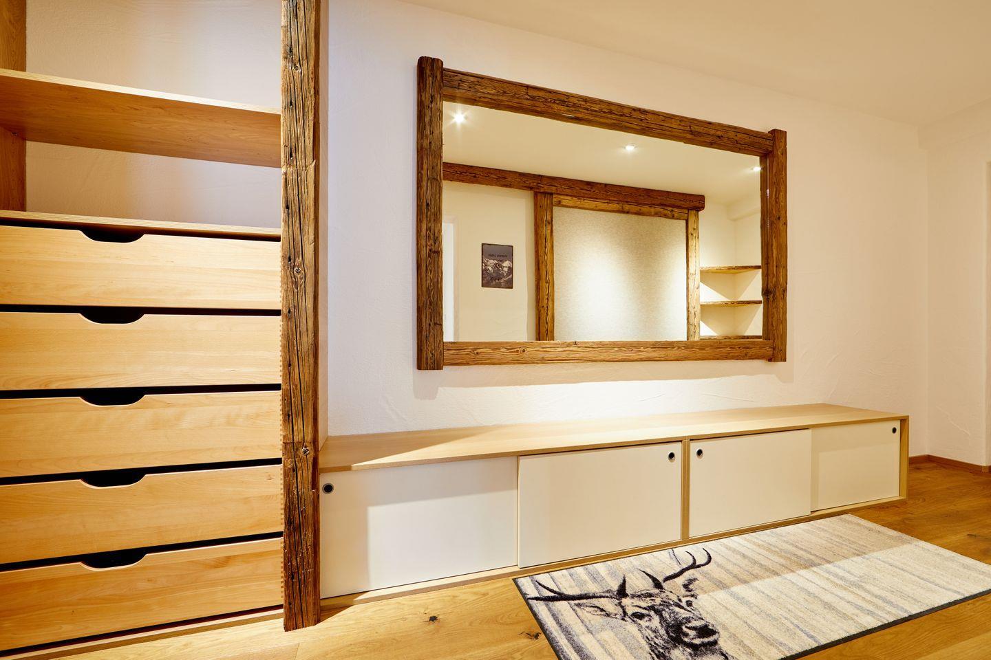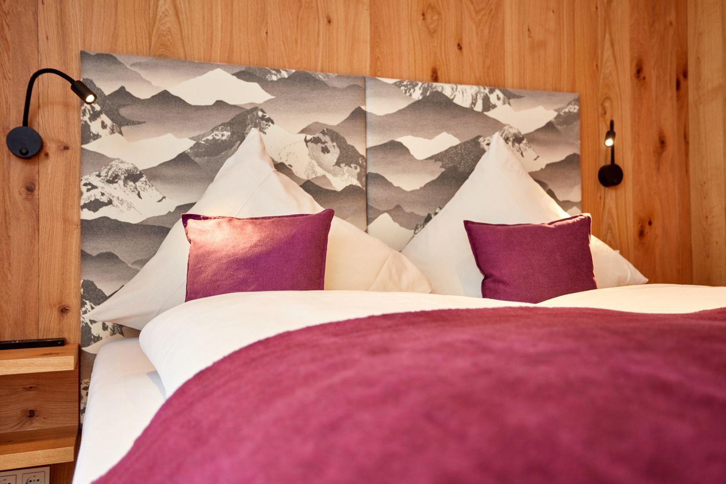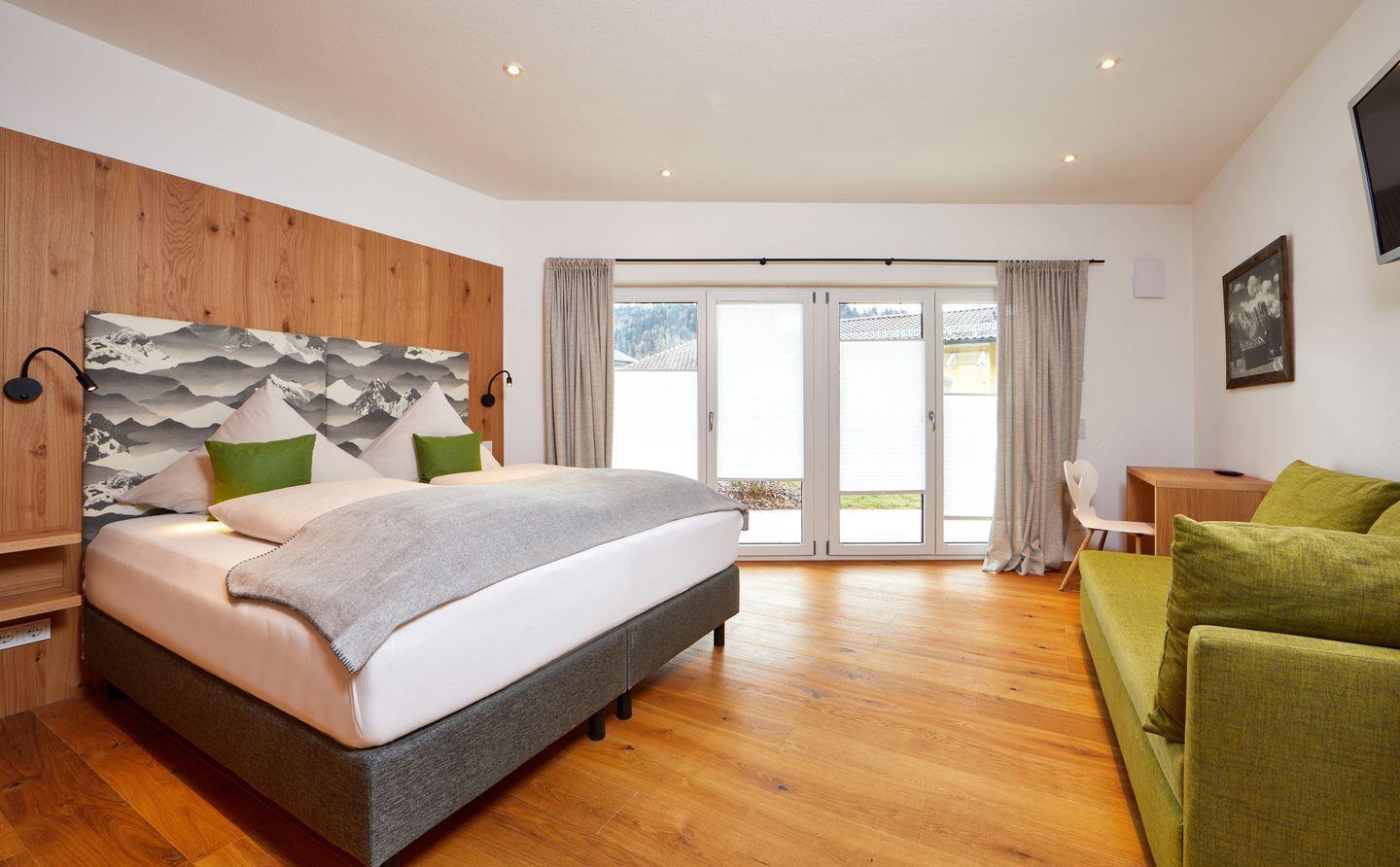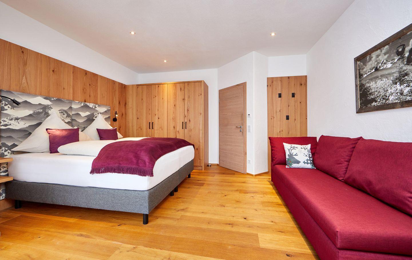 Im Dachgeschoss verfügen Sie über ein großes Schlafzimmer mit Boxspringbetten und angrenzendem Badezimmer. Hier erwartet Sie durch die Fensterfront oder vom Balkon ebenfalls ein grandioser Blick auf das Wettersteingebirge mit Alpspitze und Zugspitze.