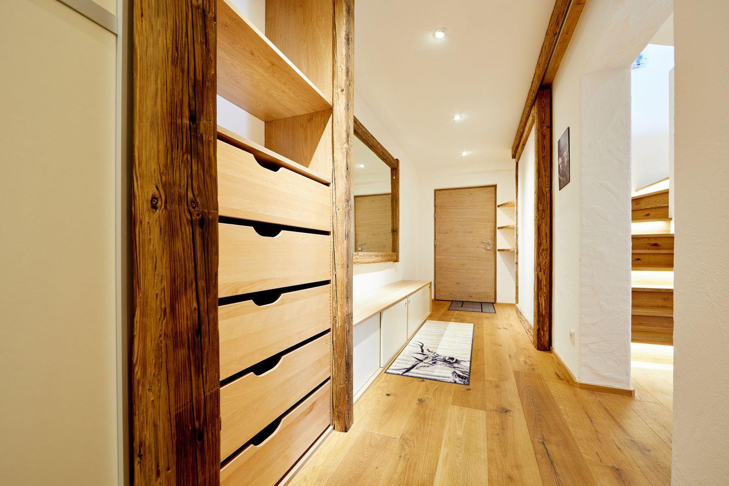 Die traumhafte Aussicht ist bereits auf dieser Etage durch die großen Fenster und von der Terrasse aus präsent. Viel Stauraum bietet sich dank begehbarem Kleiderschrank und großzügigen Einbauschränken. Für unsere Gäste, welche auch im Urlaub arbeiten müssen, steht in einem der Schlafzimmer auch ein Schreibtisch zur Verfügung. Ein großzügiges Bad mit Badewanne und Dusche, sowie ein separates WC, machen diese Etage vollkommen. In einem weiteren Raum erleben Sie absolute Entspannung in der gerade fertig gestellten Sauna mit Saunarium.