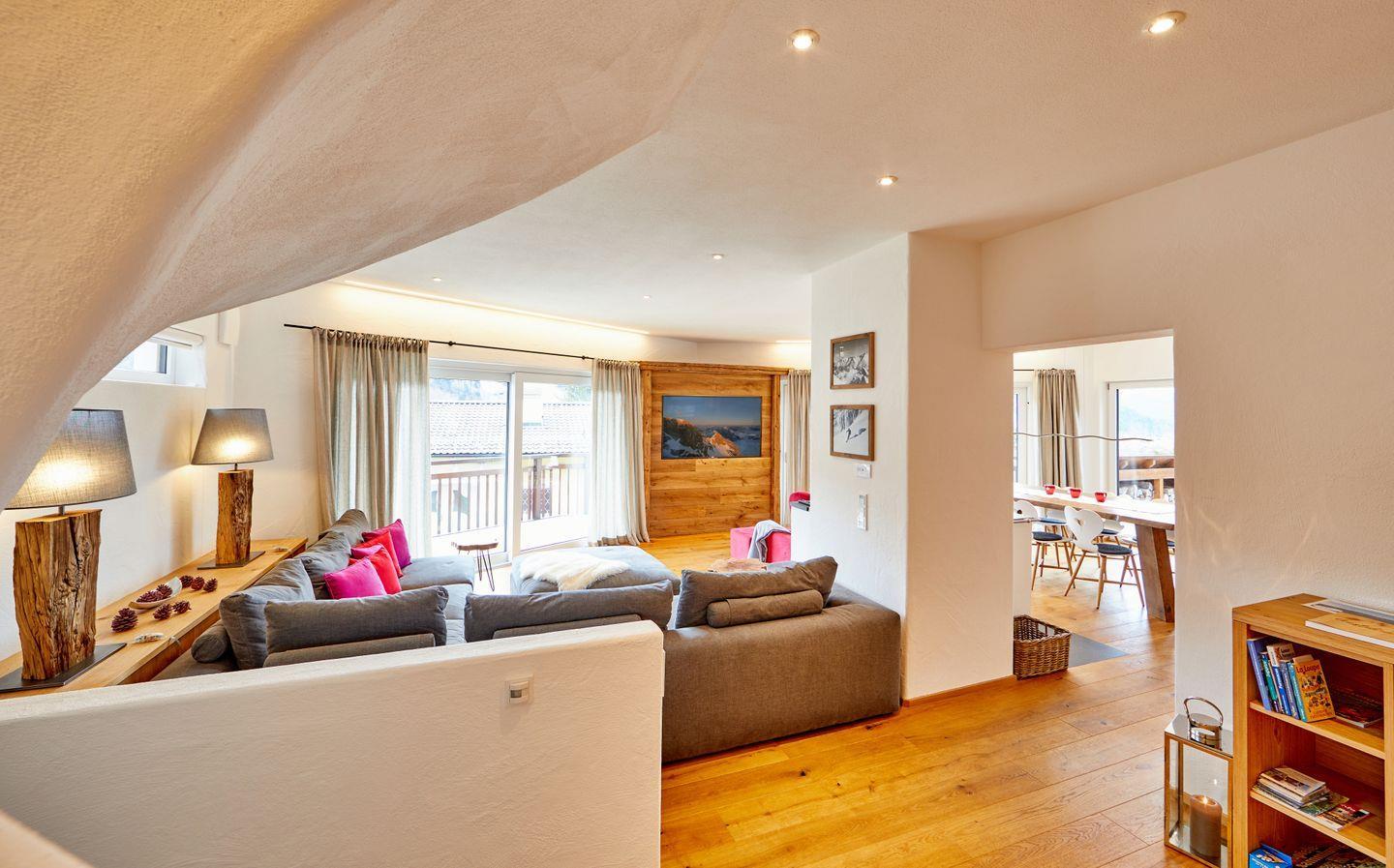 Umgeben wird dieser Bereich von einem großen Balkon mit traumhaftem Panoramablick.
