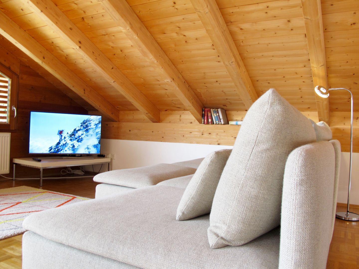 Hohe Decken, viel Holz und moderne Einrichtung verleihen dieser Wohnung eine besondere Atmosphäre.