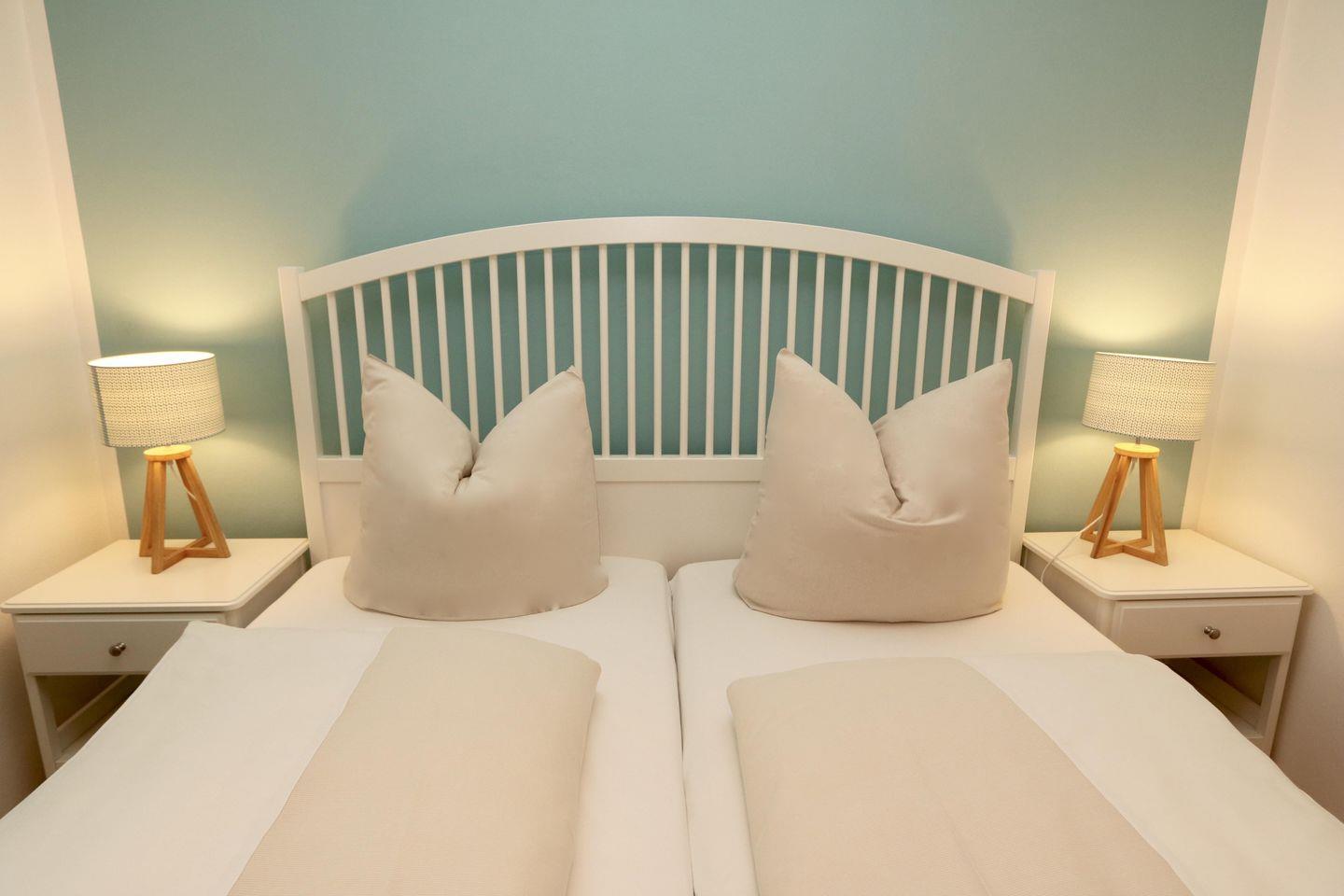 Über eine kleine Wendeltreppe gelangt man in das 2. OG der Wohnung, wo sich zwei weitere Schlafzimmer und ein kleiner Abstellraum befinden.