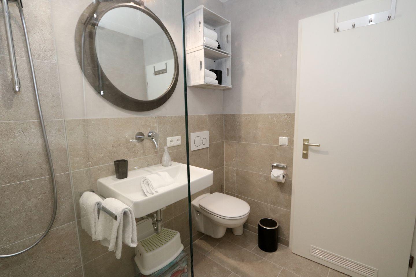 Im 1. OG befinden sich ein Schlafzimmer, ein Badezimmer mit bodengleicher Dusche und WC, die voll ausgestattete Küche und das Wohnzimmer. Vom Wohnzimmer aus hat man Zugang zu dem großen Balkon mit Blick auf die Berge und auch in der Küche kann man beim Kochen durch die großen Fensterflächen den Blick ins Grüne genießen.
