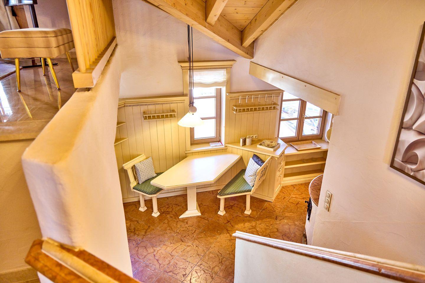 In ruhiger Lage neben der Fußgängerzone von Partenkirchen finden Sie nicht nur alle Geschäfte für Ihren täglichen Bedarf in unmittelbarer Nähe, sondern auch einen einfachen Zugang zu Wanderwegen und kulturellen Sehenswürdigkeiten wie der historischen Ludwigstraße. Hier finden Sie nicht nur eine Unterkunft, sondern eine Einladung, Ihren Aufenthalt voller Abenteuer, Wellness und Komfort in vollen Zügen zu genießen. Diese Maisonette-Ferienwohnung bietet bis zu 6 Personen auf zwei Etagen und ca. 140 Quadratmetern eine harmonische Mischung aus modernem Komfort und traditioneller Eleganz.