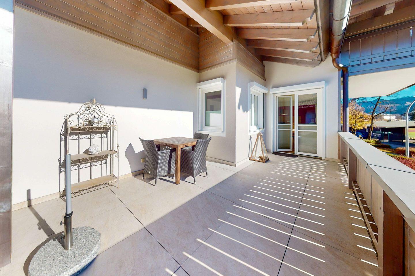 Ein besonderes Highlight der Ferienwohnung „Maximilian“ ist der umlaufende Balkon nach Süden, Westen und Norden. Die großzügige Südseite bietet viel Platz zum Sonnen, Lesen und Entspannen und eröffnet einen beeindruckenden Blick auf Alpspitze und Zugspitzmassiv. Der Balkon verläuft als schmalerer Umlaufbalkon entlang der Fassade und ist sowohl vom Wohnzimmer als auch von beiden Schlafzimmern aus zugänglich. So haben Sie zu jeder Tageszeit unterschiedliche Blickrichtungen in die Bergwelt und mehrere direkte Wege ins Freie.