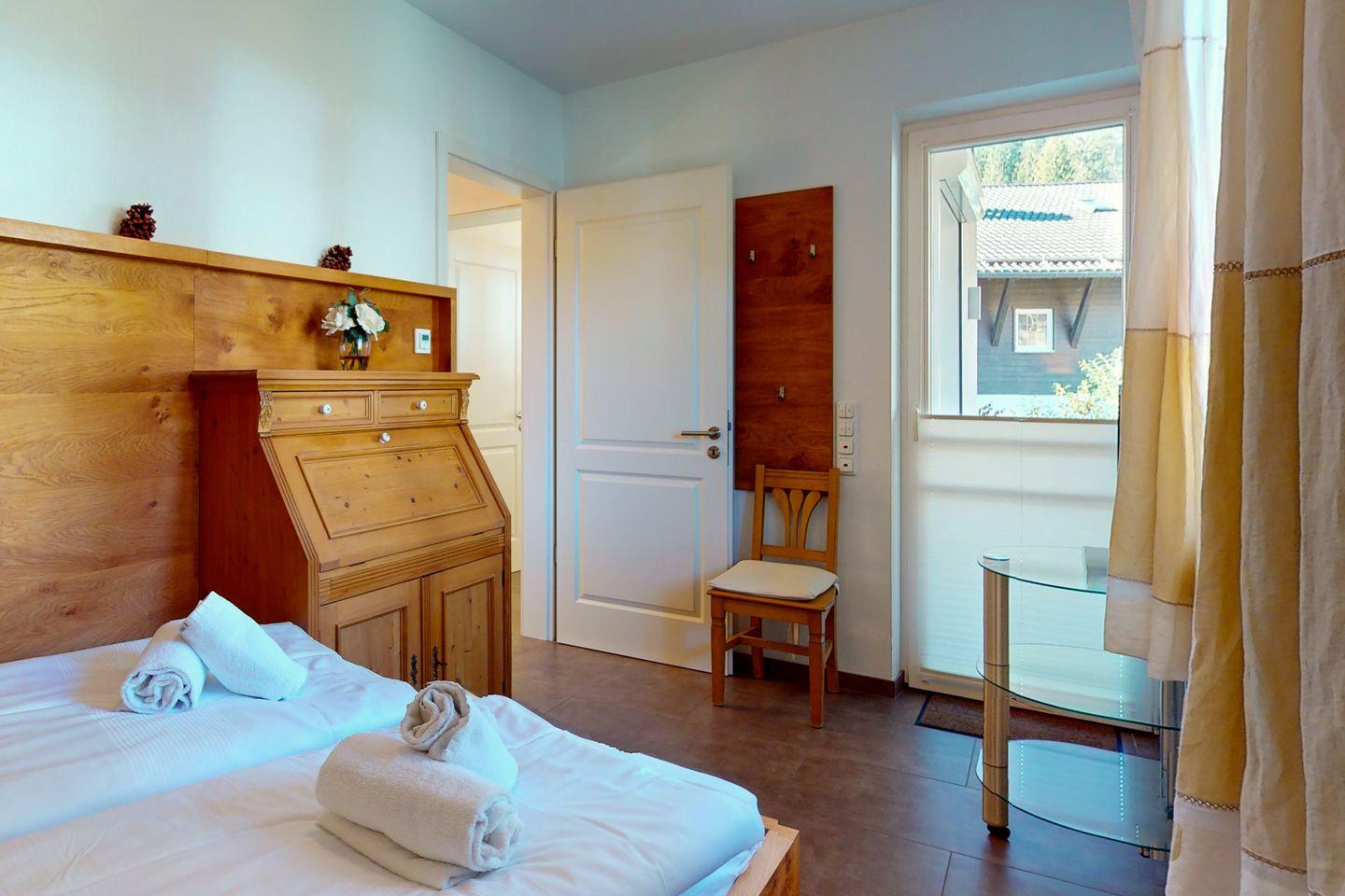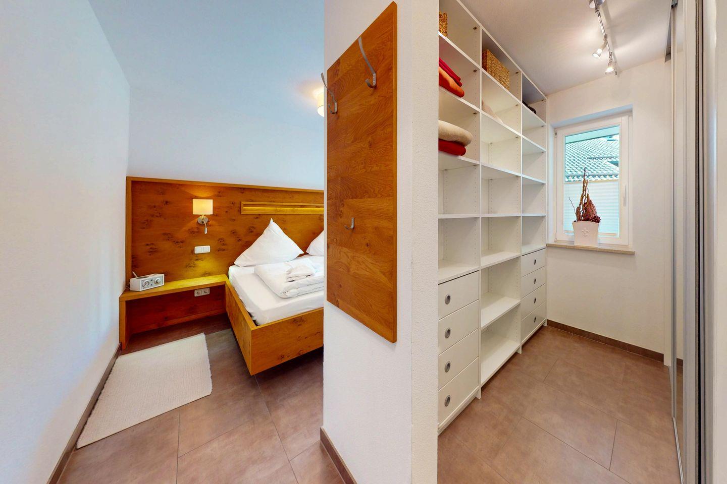 Die beiden Schlafzimmer bieten angenehme Rückzugsorte für erholsamen Schlaf. Das größere Schlafzimmer ist mit einem Doppelbett und einem begehbaren Kleiderschrank mit viel Stauraum ausgestattet. Im zweiten Schlafzimmer steht ein großes Einzelbett; eine kleine Schreibkommode eignet sich gut als Arbeitsplatz für den Laptop, falls während des Urlaubs doch einmal etwas erledigt werden muss. Beide Zimmer verfügen über eigene Fernseher, sodass sich jeder nach Wunsch zurückziehen kann.