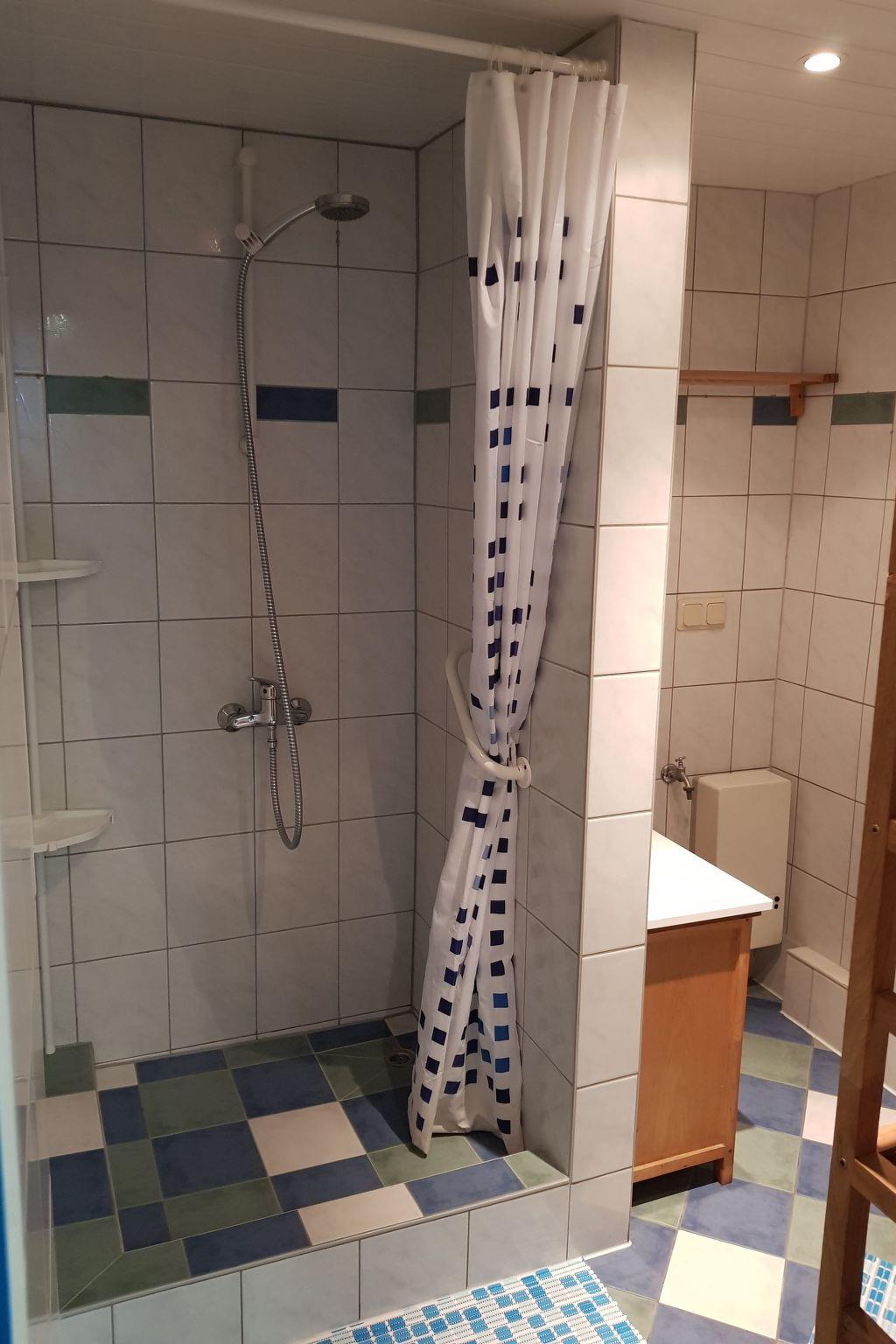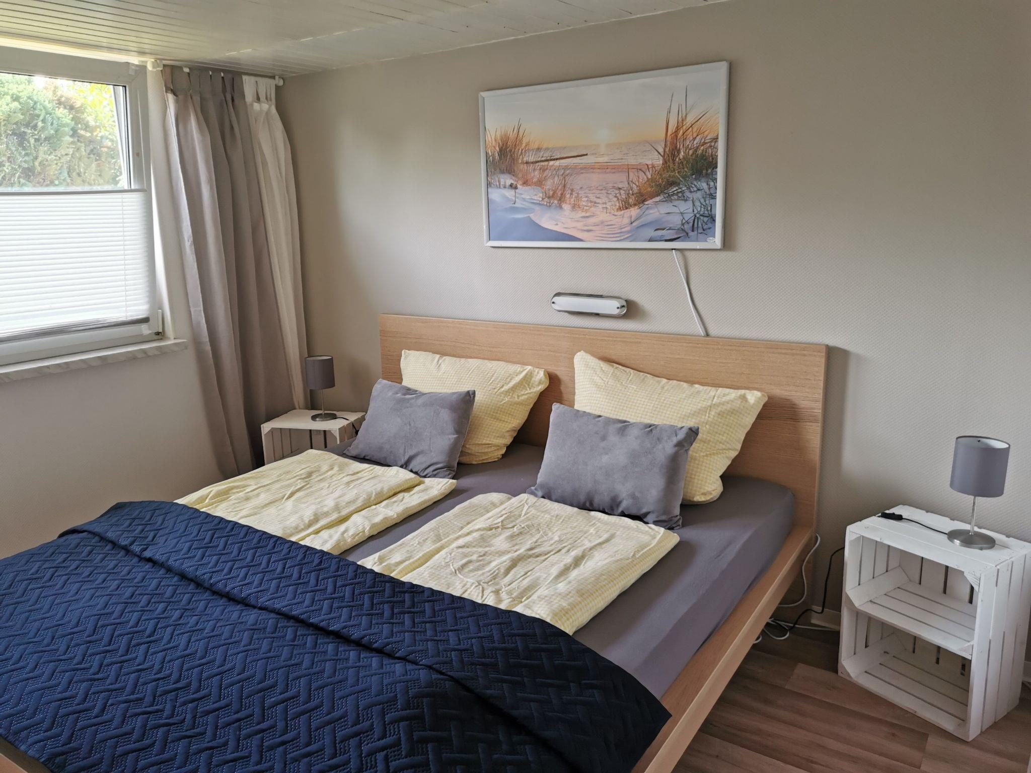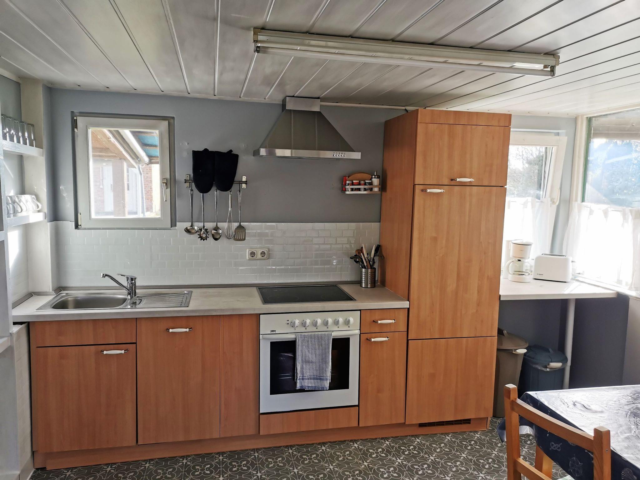 The single-storey house has a living space of 60 m² and is divided into a cosy living area, a well-equipped open-plan kitchen-diner, a shower room and a bedroom. In the bedroom you sleep in a double bed measuring 180 cm x 200 cm, which is surrounded by two bedside tables with reading lamps on both sides. In the living room, you can relax on two upholstered sofas after a long day out. A fire in the stove creates a cosy atmosphere and the flat-screen TV provides entertainment. There is also a pull-out sofa bed for a third and fourth guest in the living room. Adjacent you will find the open-plan kitchen, which allows you to cater for yourself: from a cooker with four hotplates and oven to a fridge with freezer compartment, dishwasher and the usual small electrical appliances such as coffee machine, kettle and toaster, everything you need is available.