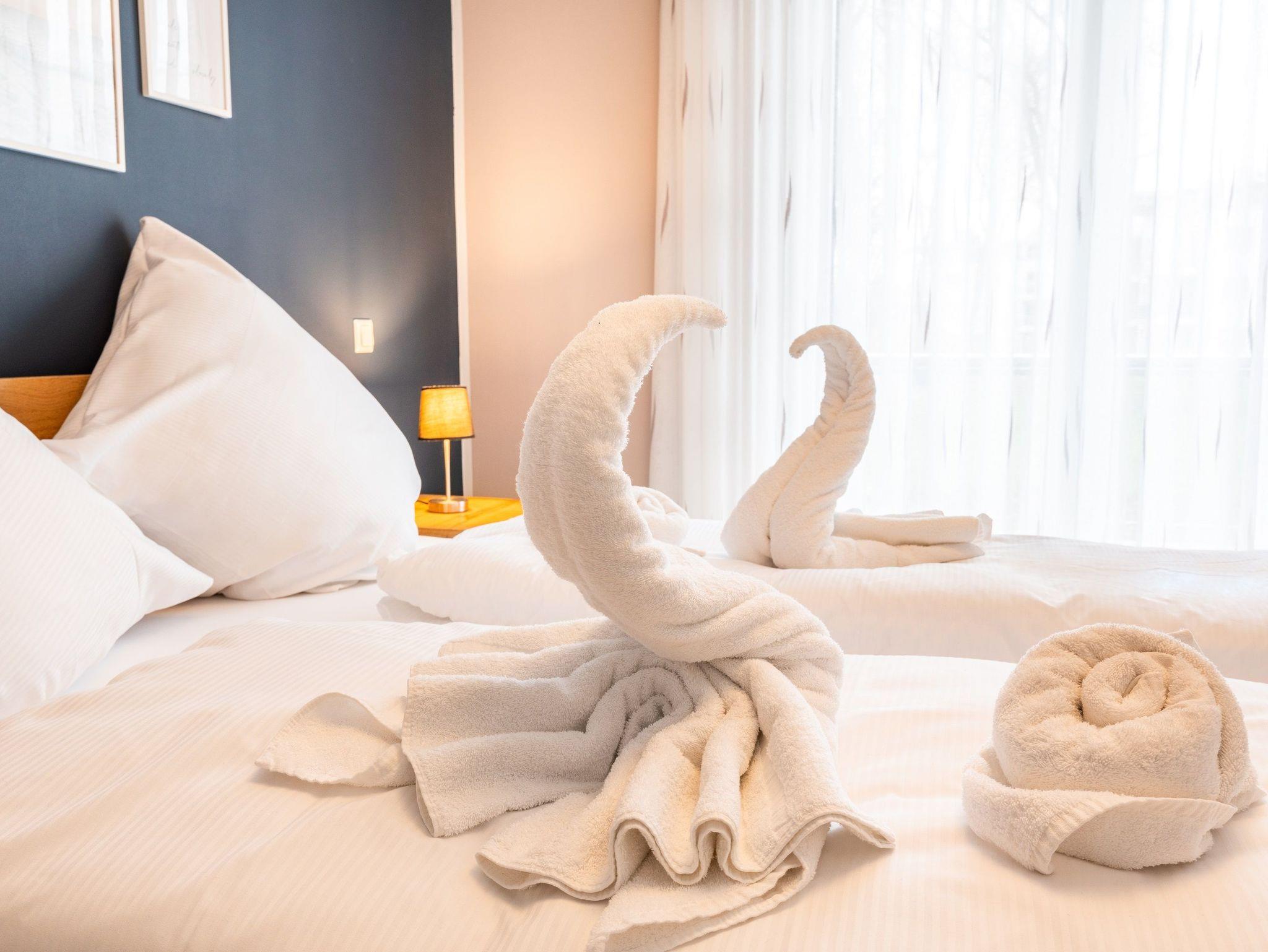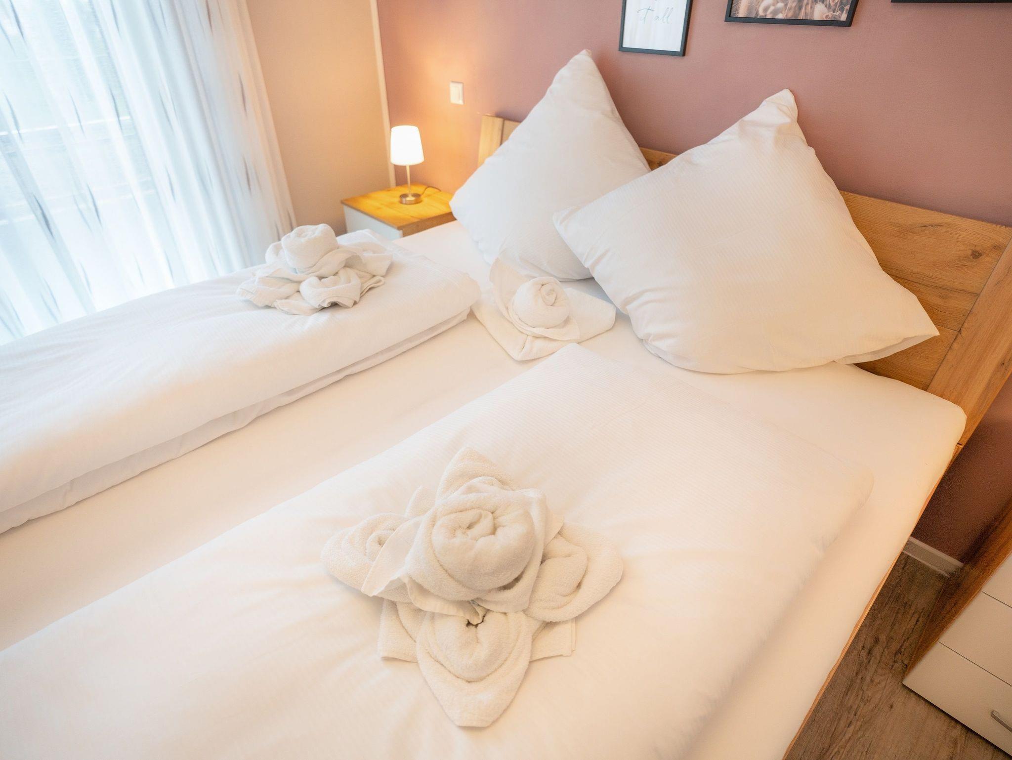 Für Ihren Aufenthalt stellen wir Ihnen Bettwäsche und Handtücher kostenfrei zur Verfügung. Ansprechpartnerinnen und Ansprechpartner sind vor Ort stets erreichbar.