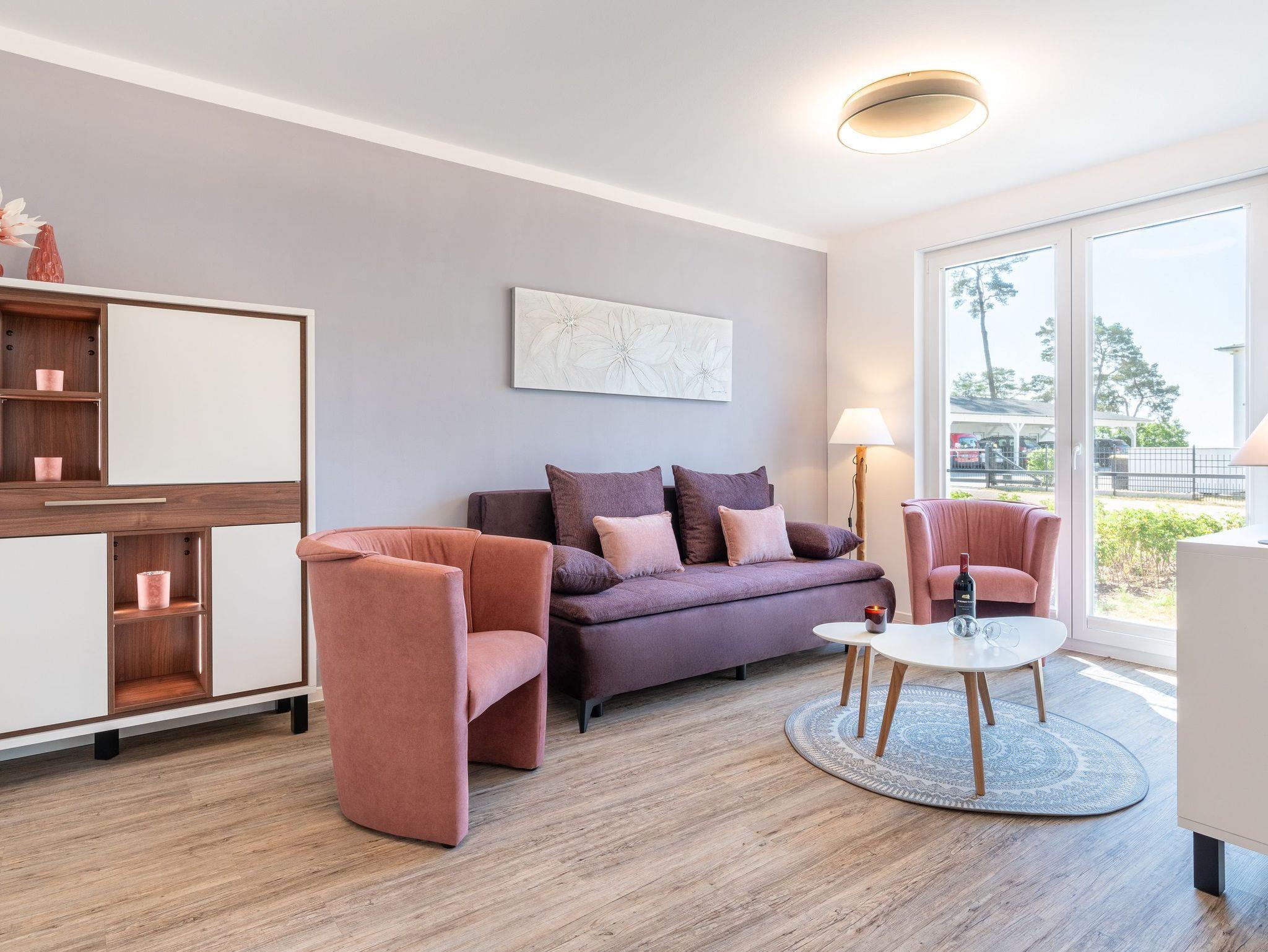 Auf einer Wohnfläche von 92 m² finden bis zu vier Erwachsene und ein Kleinkind bis zwei Jahre in dieser modern eingerichteten Ferienwohnung ausreichend Platz für einen entspannten Urlaub am Stettiner Haff auf Usedom.