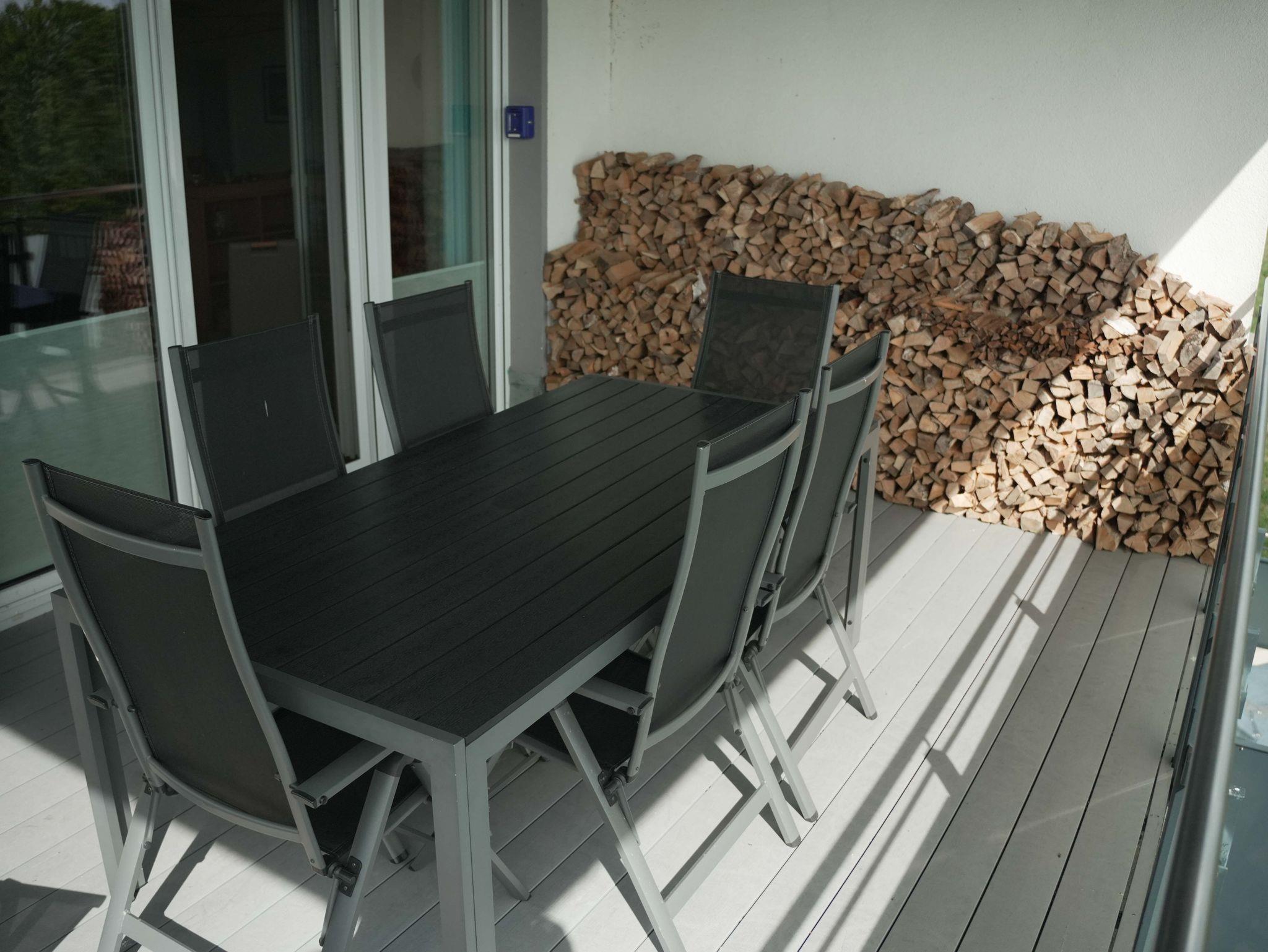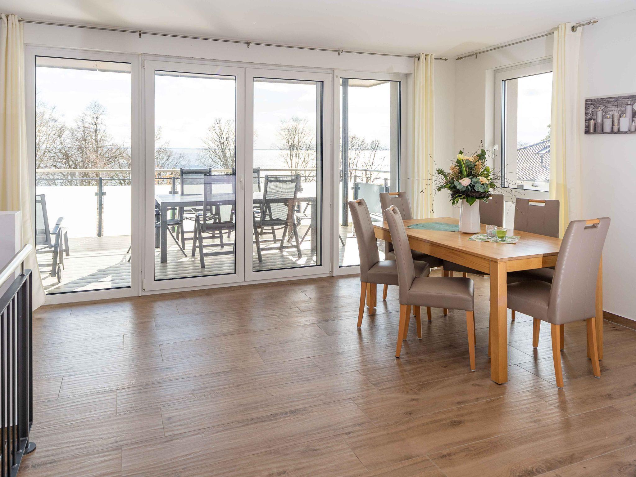 Unsere Ferienwohnung ist großzügig geschnitten und für bis zu 8 Personen geeignet, 2. OG, 160 qm, 3 Schlafzimmer zzgl. Schlafcoach im Wohnzimmer, 1 Balkon, 2 Bäder, Küche, eigene Sauna