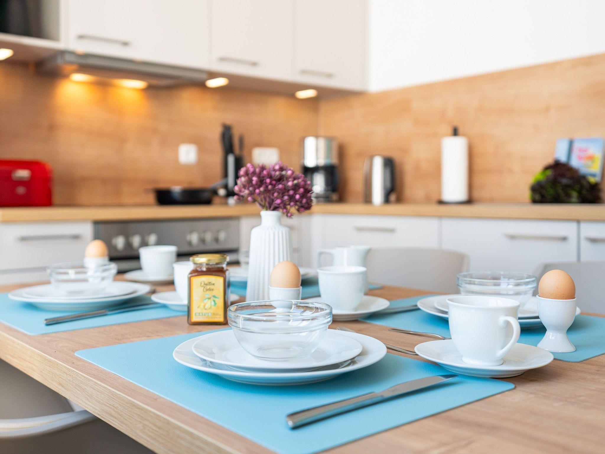 Auf einer Wohnfläche von 88 m² finden fünf Erwachsene und ein Kind bis 8 Jahre in dieser modern eingerichteten Ferienwohnung ausreichend Platz für einen entspannten Urlaub am Stettiner Haff auf Usedom.