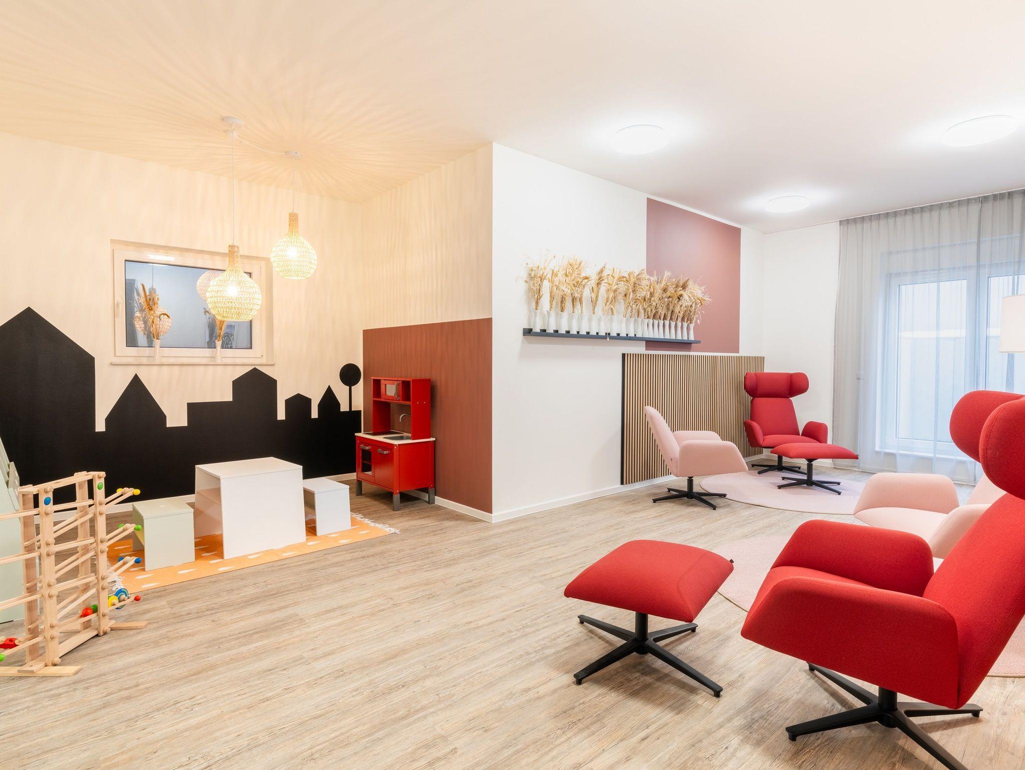 Ihre Kinder dürfen sich auf den vielseitig gestalteten Freizeitbereich (390 m²) im Souterrain des Nachbarhauses (Nr. 3) mit Tischtennis, Airhockey, Spielecke und Kickertisch freuen, der selbst an Schlechtwettertagen keine Langeweile aufkommen lässt. Erwachsene finden am Billardtisch oder in der gemütlichen Lounge-Ecke Ausgleich mit einem guten Buch oder Musik im Ohr.