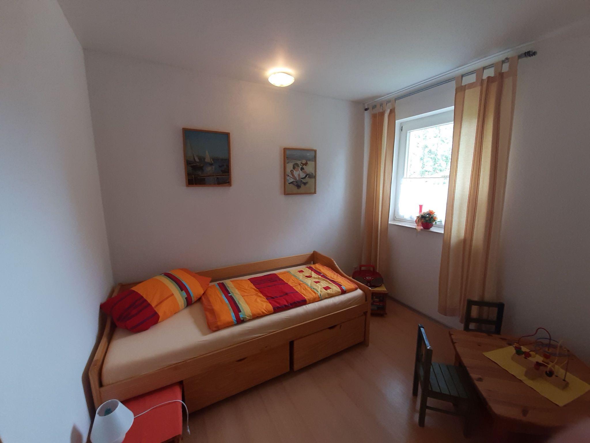 Gemütliche 4-Sterne Wohnung im Erdgeschoss mit 3 Schlafräumen (eines mit Doppelbett, das zweite mit zwei Einzelbetten, das dritte mit einem Einzelbett), großzügigem Bad und Wohnküche sowie Terrasse und Garten zur Belegung bis 5 Personen.