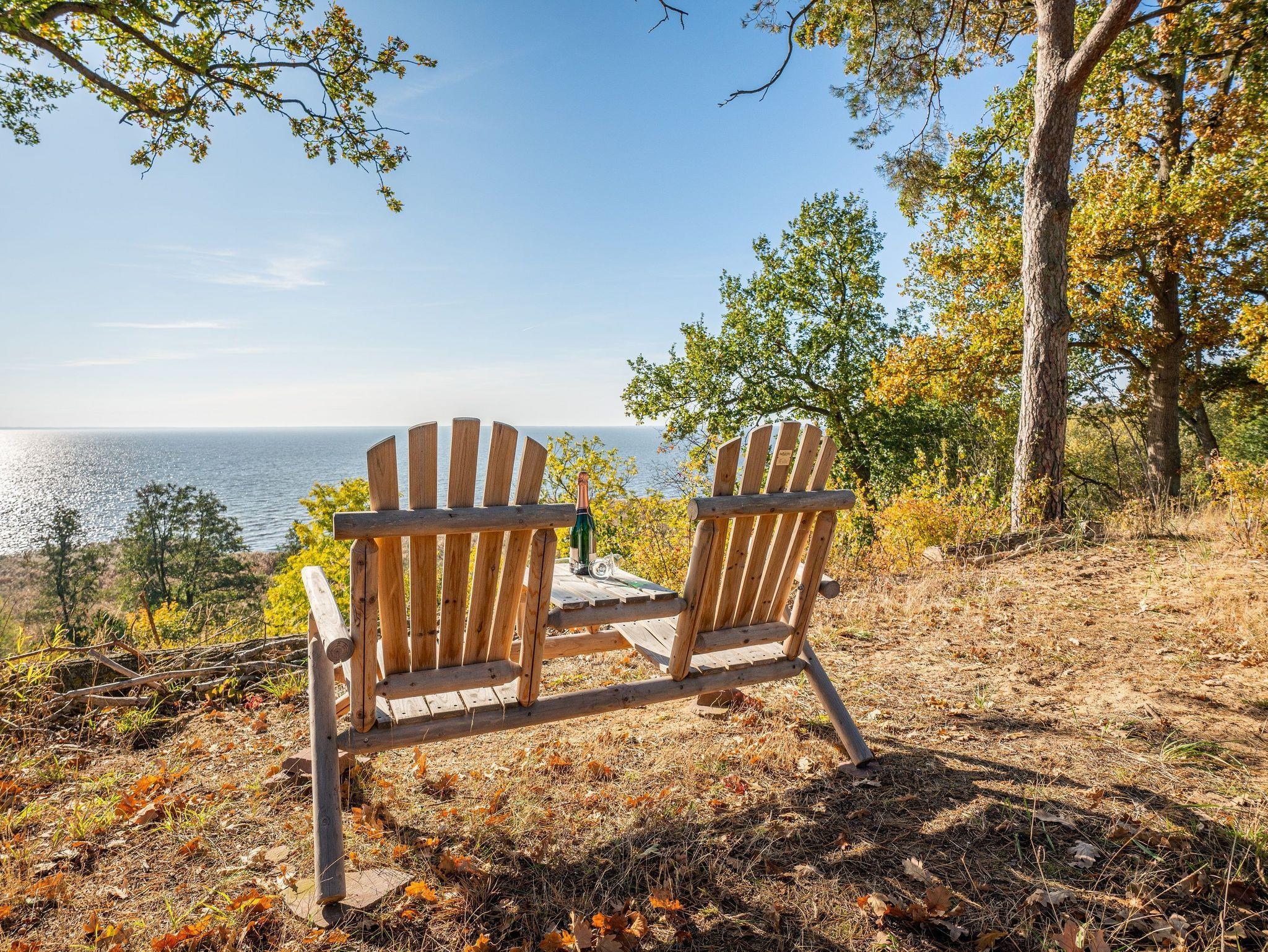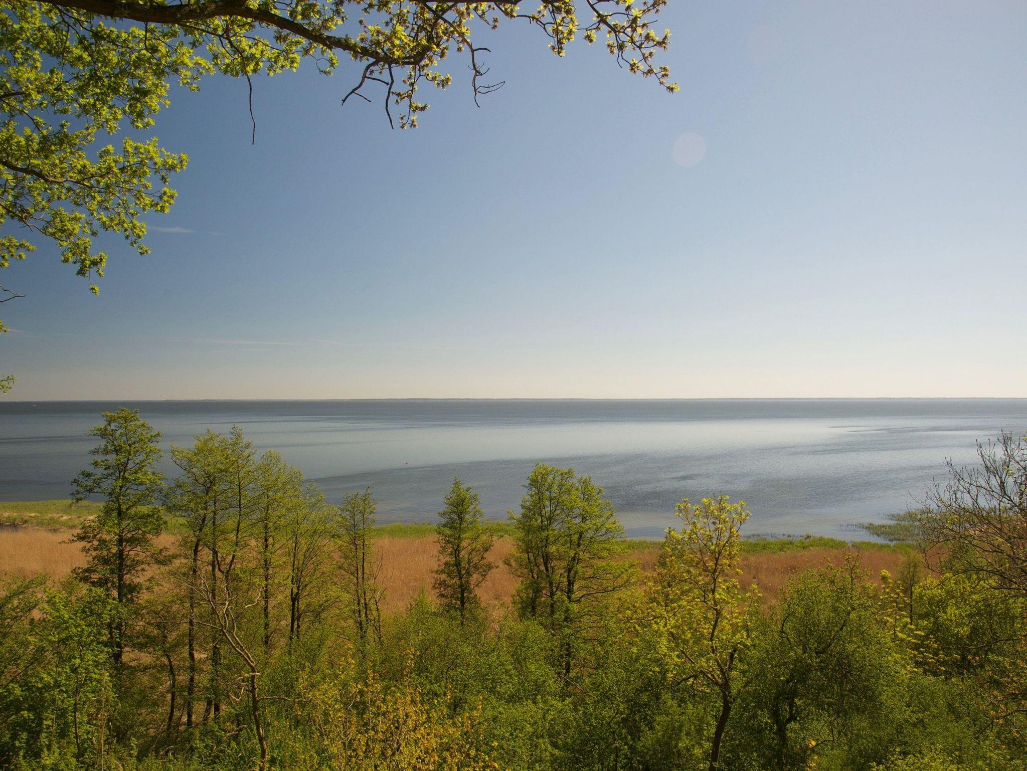 Werfen Sie nun einen Blick nach draußen: Sie haben einen großartigen, durch alte Bäume gerahmten Blick über das Haff, welches sich beinahe bis zum Horizont erstreckt. Im Schilfgürtel verstecken viele Vogelnester und Kinderstuben des Wildes. Hier sind Sie wirklich mitten in der Natur und vielleicht zieht sogar ein Seeadler gerade seine Kreise?