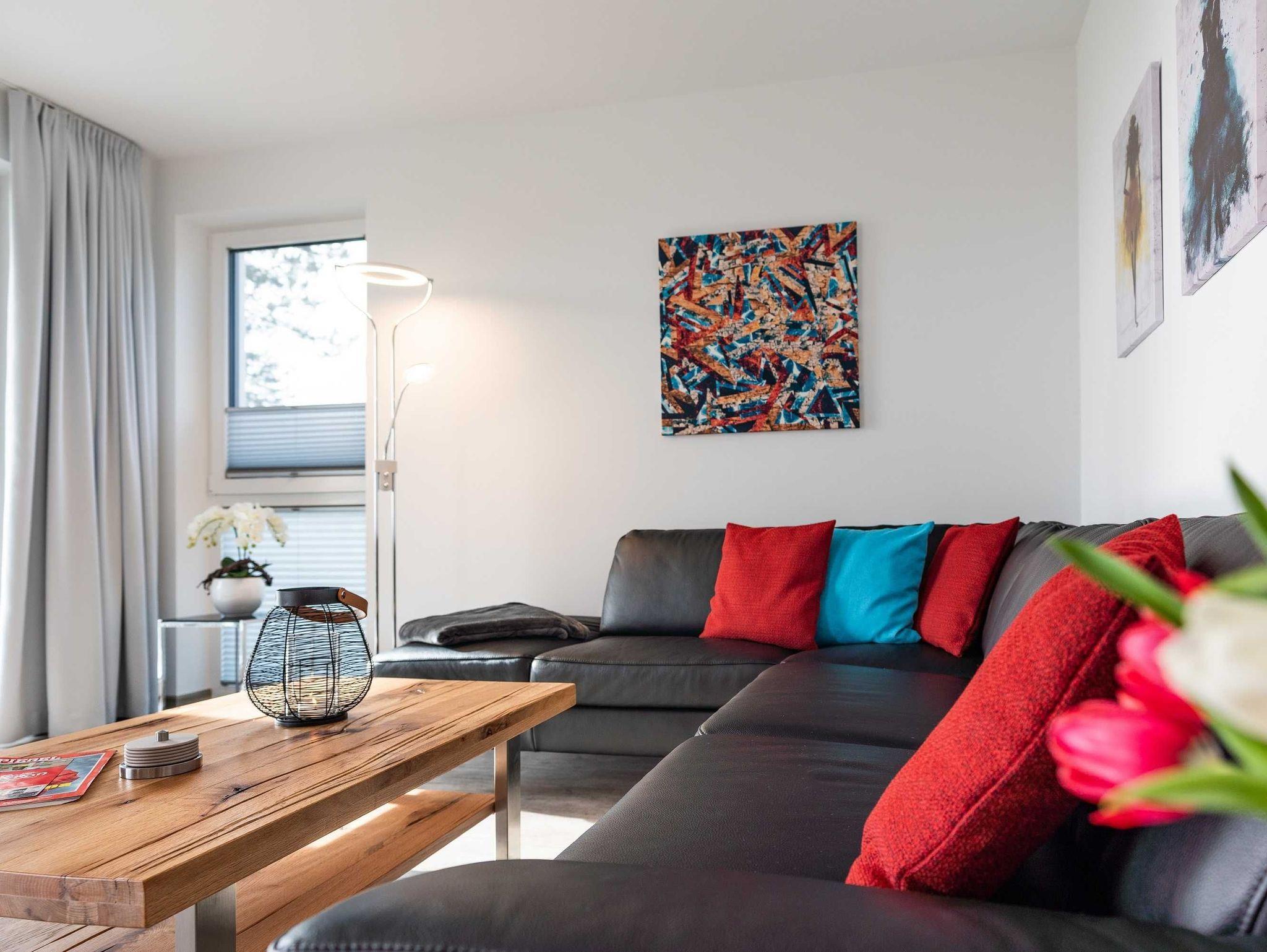 Alle Terrassenwohnungen und Appartements sind anspruchsvoll und modern ausgestattet. Großzügige Rasenflächen mit angelegten Gehwegen umgeben unsere Ferienhäuser. Einzelne Terrassen laden mit Sitzgelegenheiten an der Steilküste zum Verweilen ein.