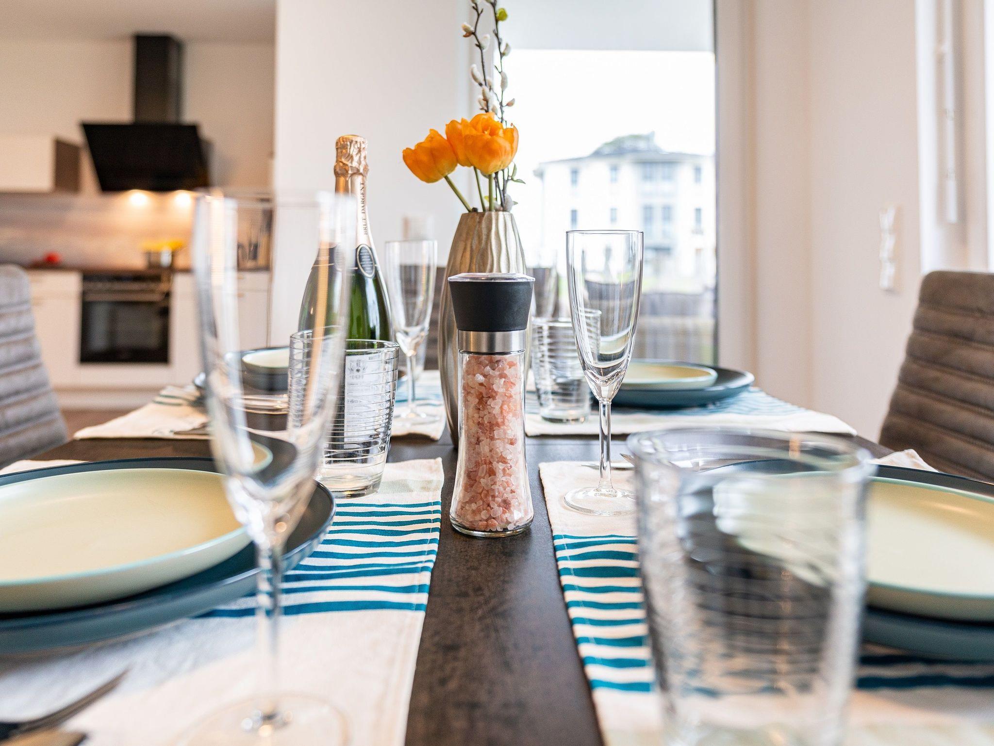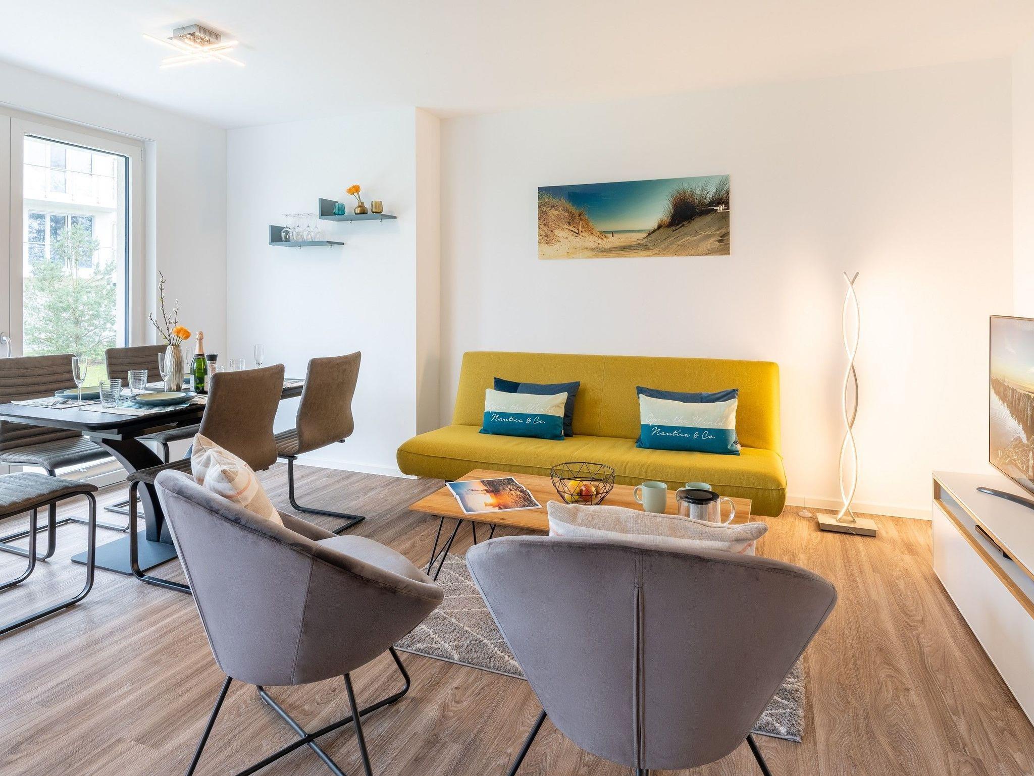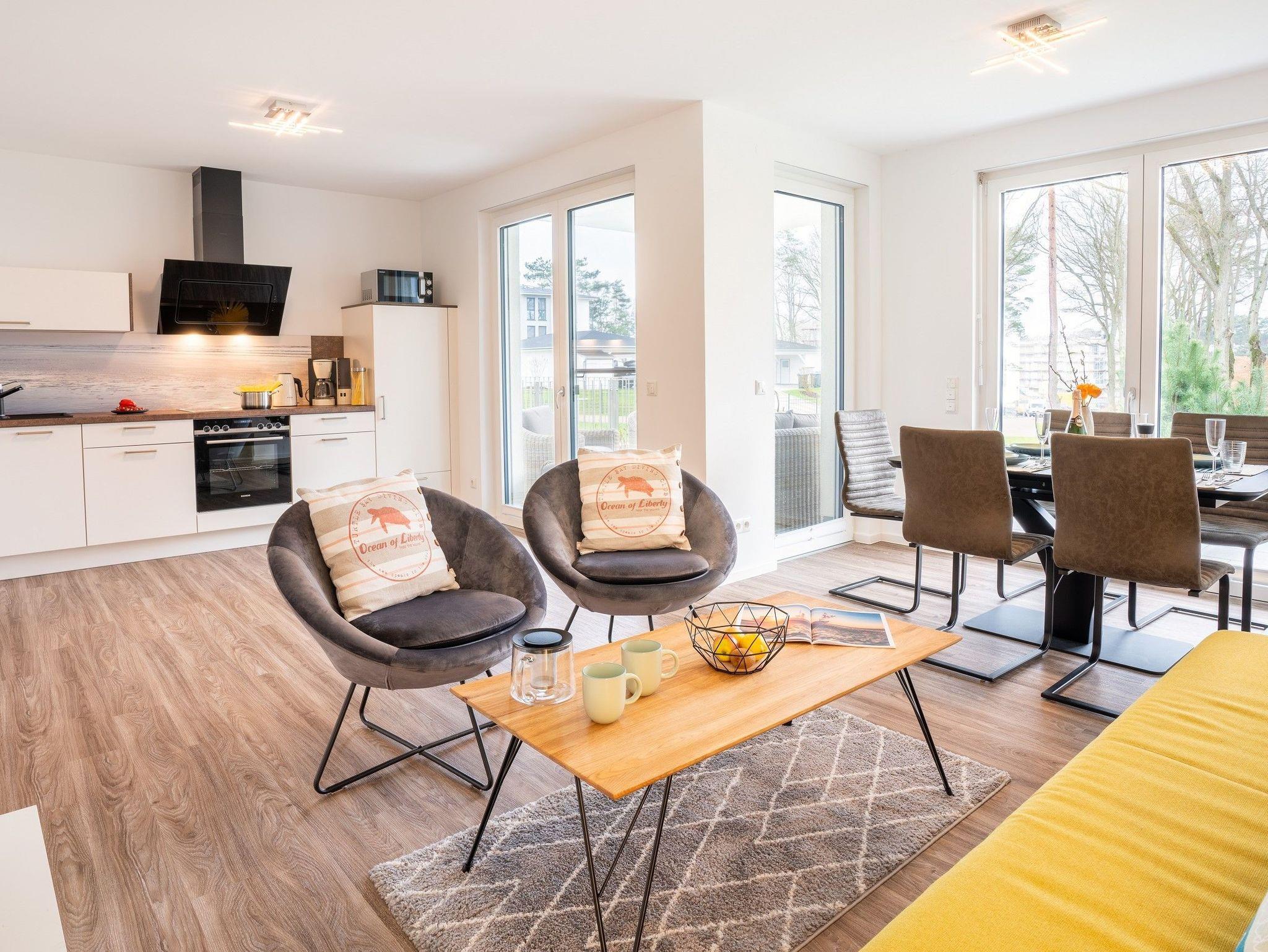 Auf einer Wohnfläche von 87 m² finden bis zu fünf Erwachsene und ein Kleinkind bis zwei Jahre in dieser modern eingerichteten Ferienwohnung ausreichend Platz für einen entspannten Urlaub am Stettiner Haff auf Usedom.