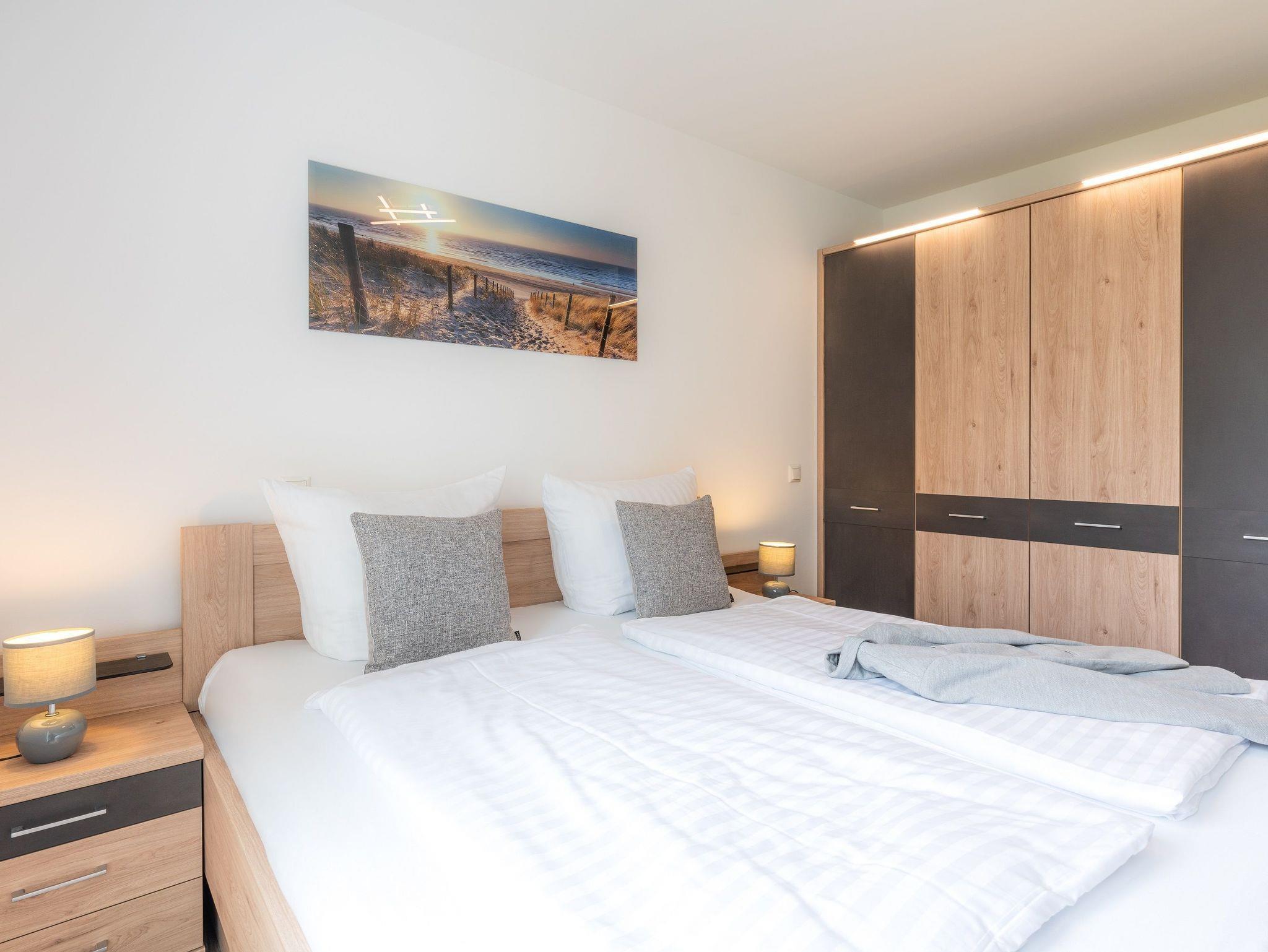 Erholsamer Schlaf in den beiden Schlafzimmern mit je einem Doppelbett (180 x 200 cm) ist garantiert. Ein Schlafzimmer ist mit einem weiteren TV-Gerät ausgestattet. Das Schlafsofa im Wohnzimmer kann im Handumdrehen zu einem Bett umfunktioniert werden (Liegefläche: 120 x 200 cm).