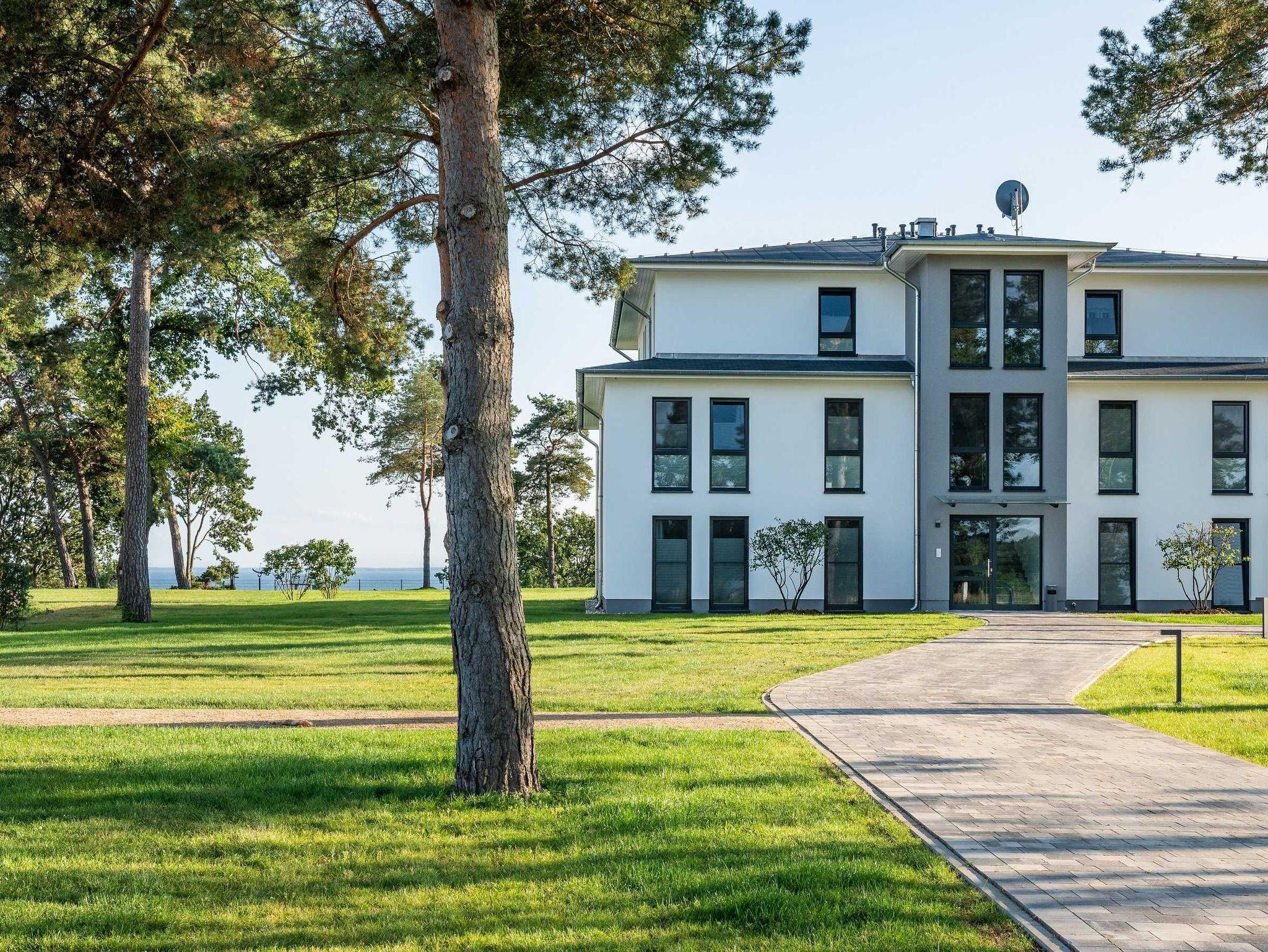 Von breiten Rasenflächen und angelegten Gehwegen umgeben, stehen unsere sieben Ferienhäuser auf die Haffküste ausgerichtet auf einer weitflächigen Außenanlage zueinander. Einzelne Sitzgruppen direkt an der Steilküste laden mit einem endlosen Blick über das Haff zum Entspannen ein.